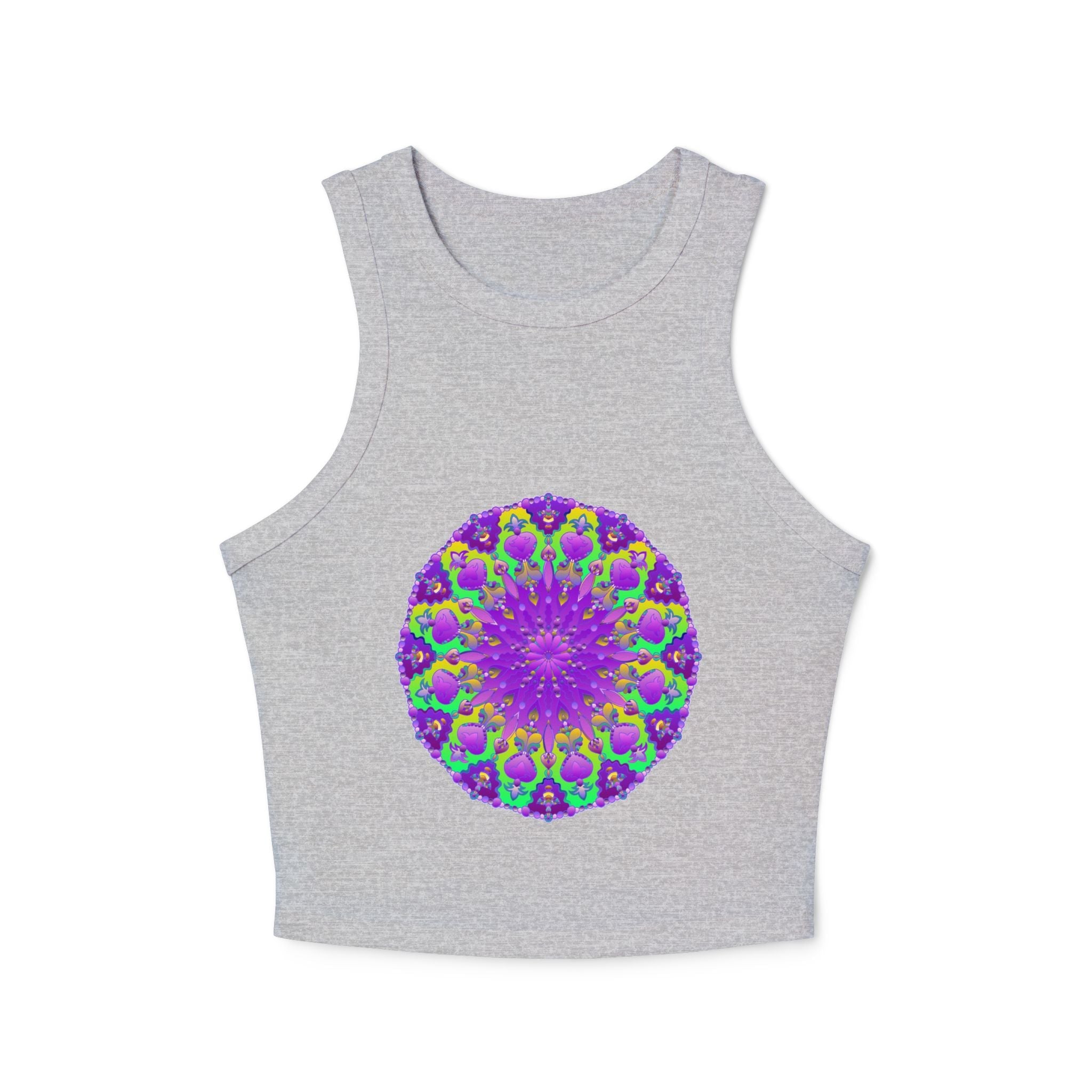Wrap yourself in the enchanting beauty of vibrant mandalas that radiate creativity and mindfulness. This stunning tank top features a mesmerizing design, where swirling patterns of purple, green, and yellow harmoniously come together. Each glance at the intricate artwork evokes a sense of tranquility and artistic flair, making it a perfect companion for yoga sessions or casual outings.