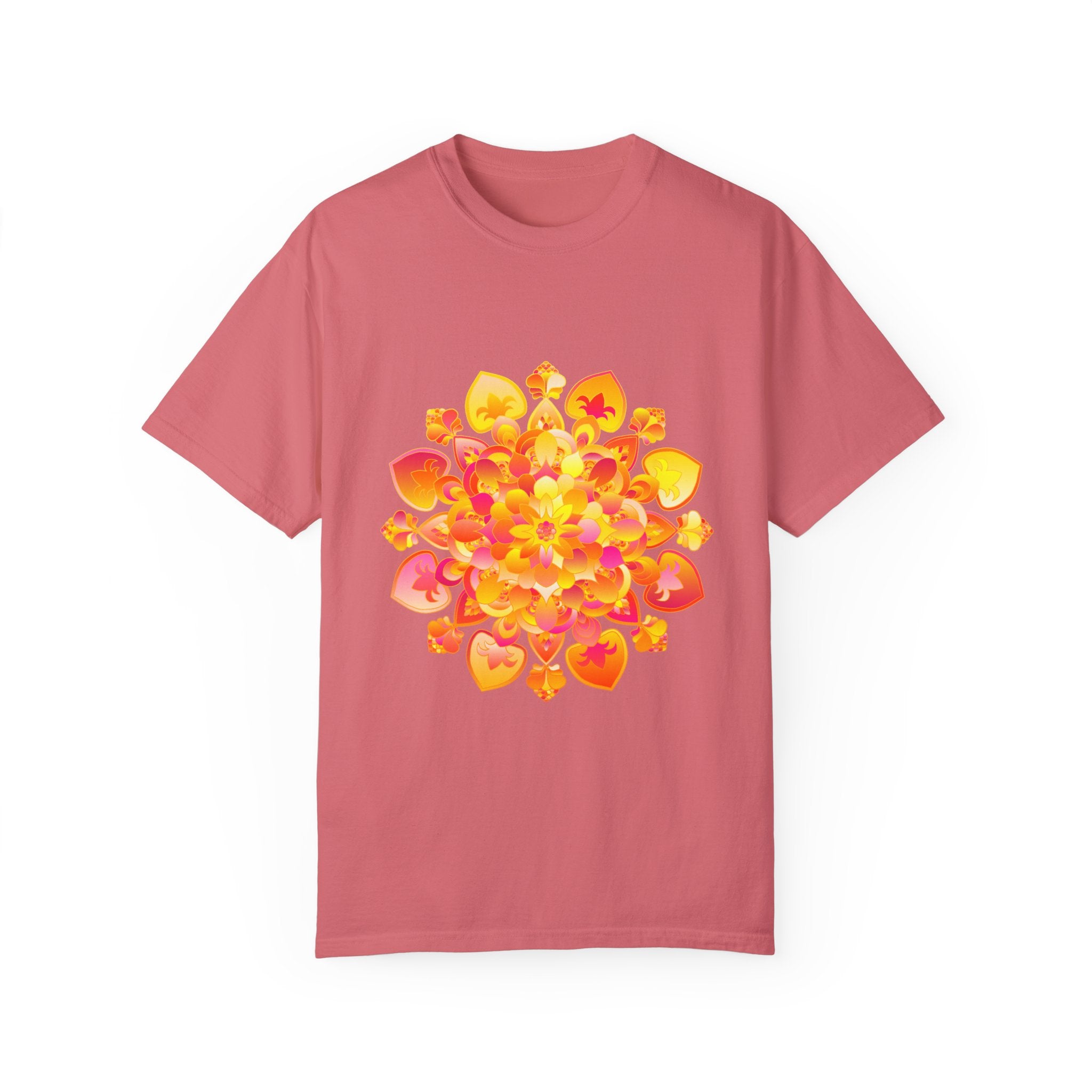 Immerse yourself in the enchanting world of vibrant colors and intricate designs with this stunning t-shirt featuring a luminous mandala. The captivating illustration bursts with warm hues of orange and yellow, evoking feelings of joy and tranquility, making it the perfect canvas for your mindful journey. Whether you’re embracing yoga, meditation, or simply enjoying a casual day out, this shirt promises to elevate your spirit.