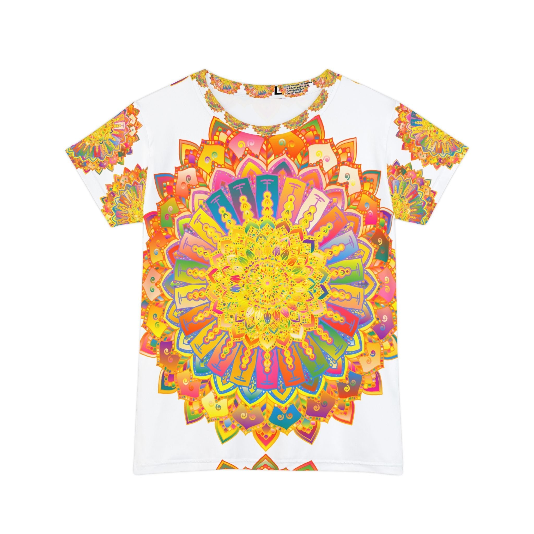 Infuse your wardrobe with this colorful mandala tee and let your style shine bright! Embrace the beauty of art in clothing and make every day a celebration of color.