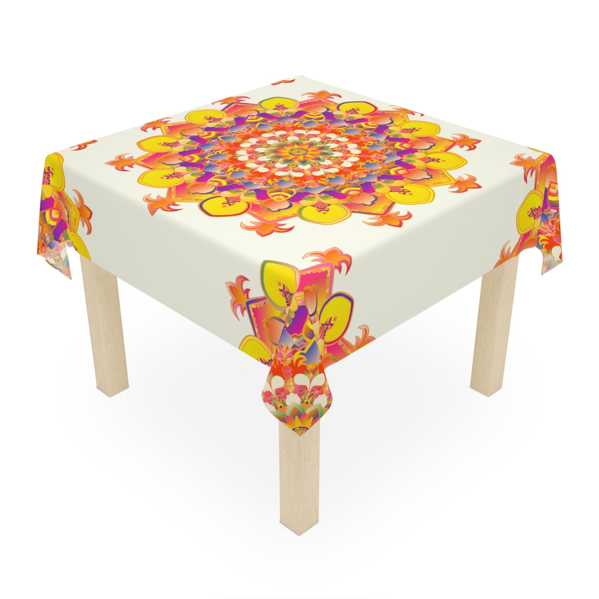 Enhance your home decor with this exquisite mandala tablecloth, a true celebration of artistry and vibrant living.