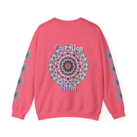 Wrap your mom in a world of vibrant creativity with this exquisite crewneck sweatshirt. Adorned with a stunning mandala design, each intricate detail bursts with hues of pink, lavender, and mint green, creating an atmosphere of tranquility and joy. This piece is not just apparel; it’s a canvas celebrating love and mindfulness, perfect for the mom who brings warmth into your life.