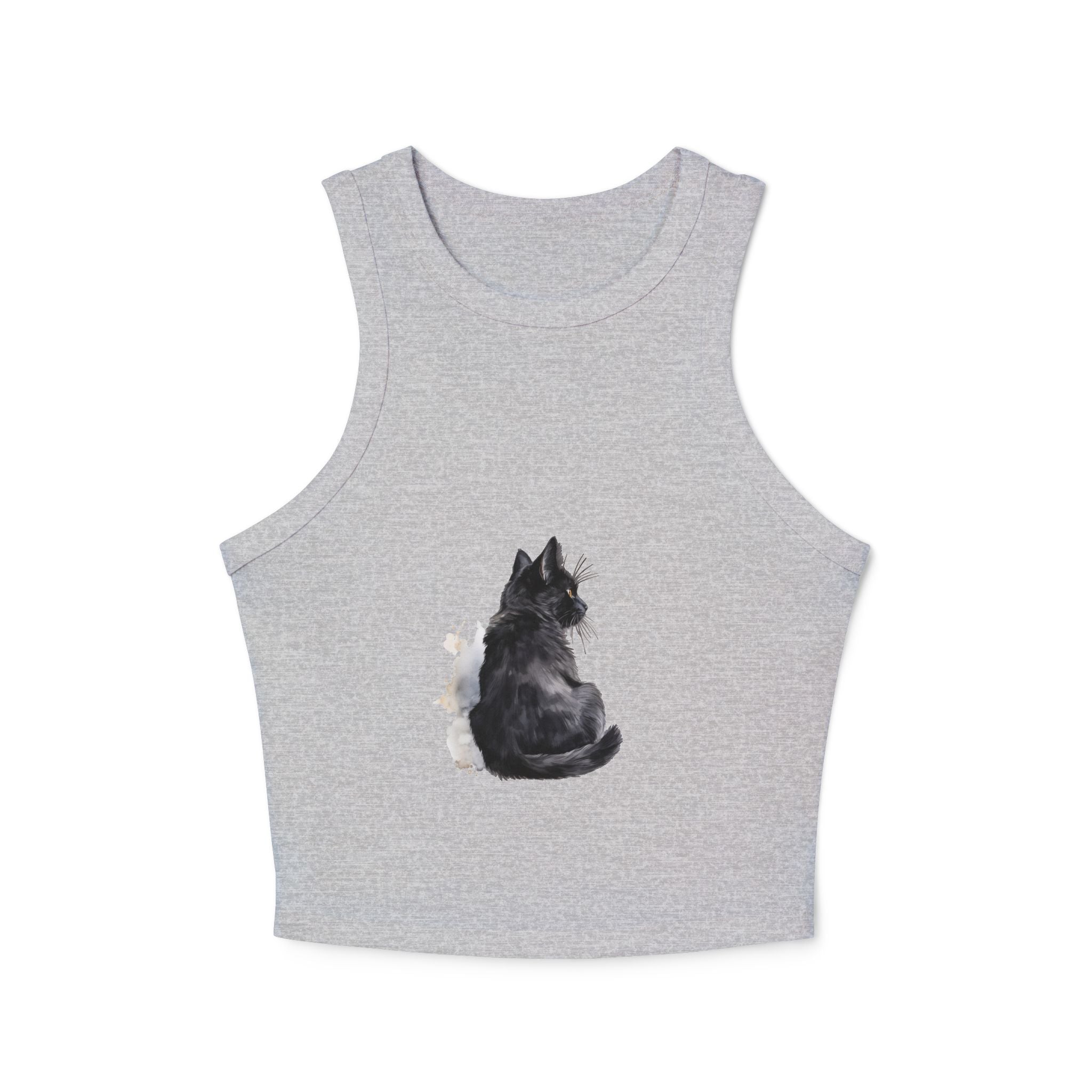 Artistic Black Cat Racerback Tank Top for Cat Lovers