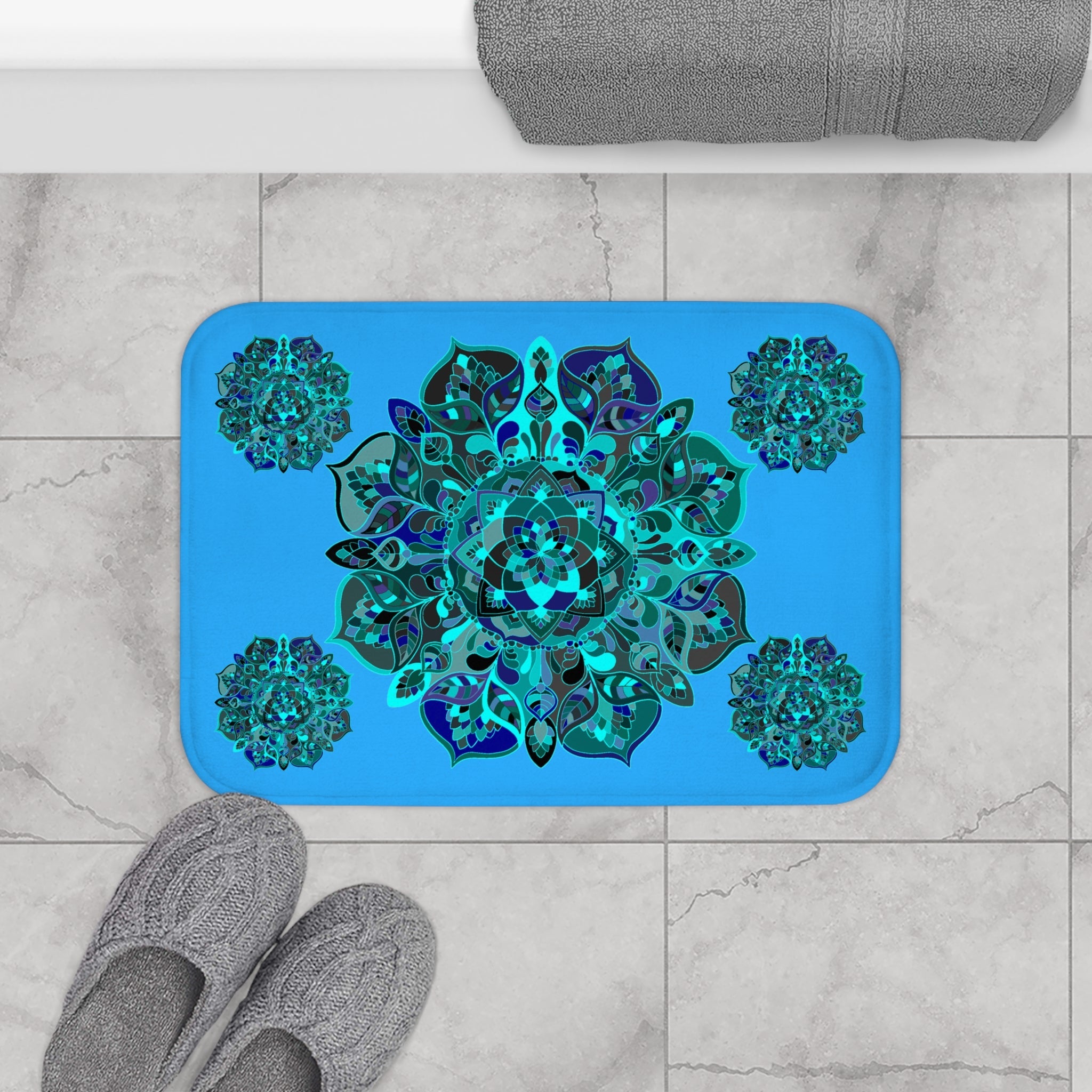 Werten Sie Ihren Raum mit einer Zen-inspirierten Azur-Mandala-Badematte auf