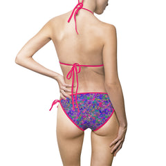 Tauchen Sie ein in ein Kaleidoskop der Farben mit diesem lebendigen Bikini-Set. Bezaubernde Mandala-Designs tanzen vor einem Hintergrund aus leuchtenden Lila- und Grüntönen. Jedes komplizierte Muster erzählt eine Geschichte und weckt Gefühle von Freiheit und Kreativität – perfekt für sonnige Tage am Strand oder Pool.