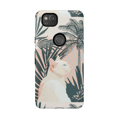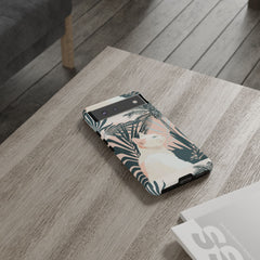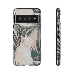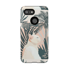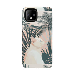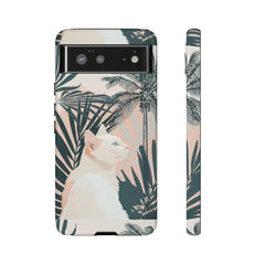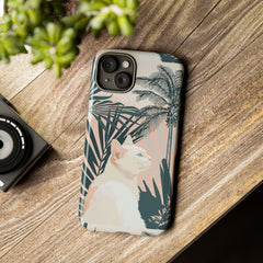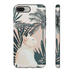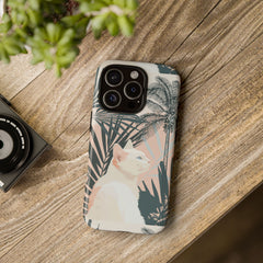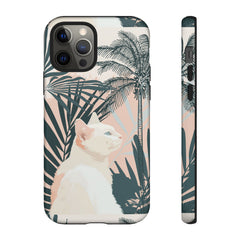 Erleben Sie eine atemberaubende Mischung aus Natur und Kunst mit unserer farbenfrohen Handyhülle mit tropischem Katzenmotiv. Die bezaubernde Illustration einer ruhigen Katze, umrahmt von üppigen Palmblättern, entführt Sie sofort in ein sonniges Paradies. Die sanften Pastell- und satten Grüntöne schaffen eine ruhige Atmosphäre und spiegeln Ihre Liebe zu Abenteuer und Wildnis wider. Es ist mehr als nur eine Handyhülle; es ist ein Statement Ihrer lebendigen Persönlichkeit!