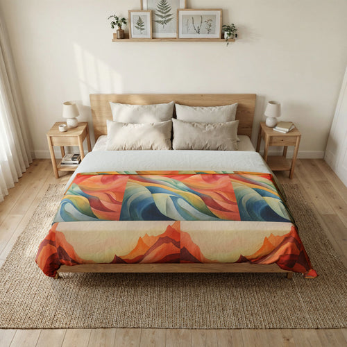 Abstrakter Bettbezug „Sonnenuntergangswellen“ aus Baumwolle
