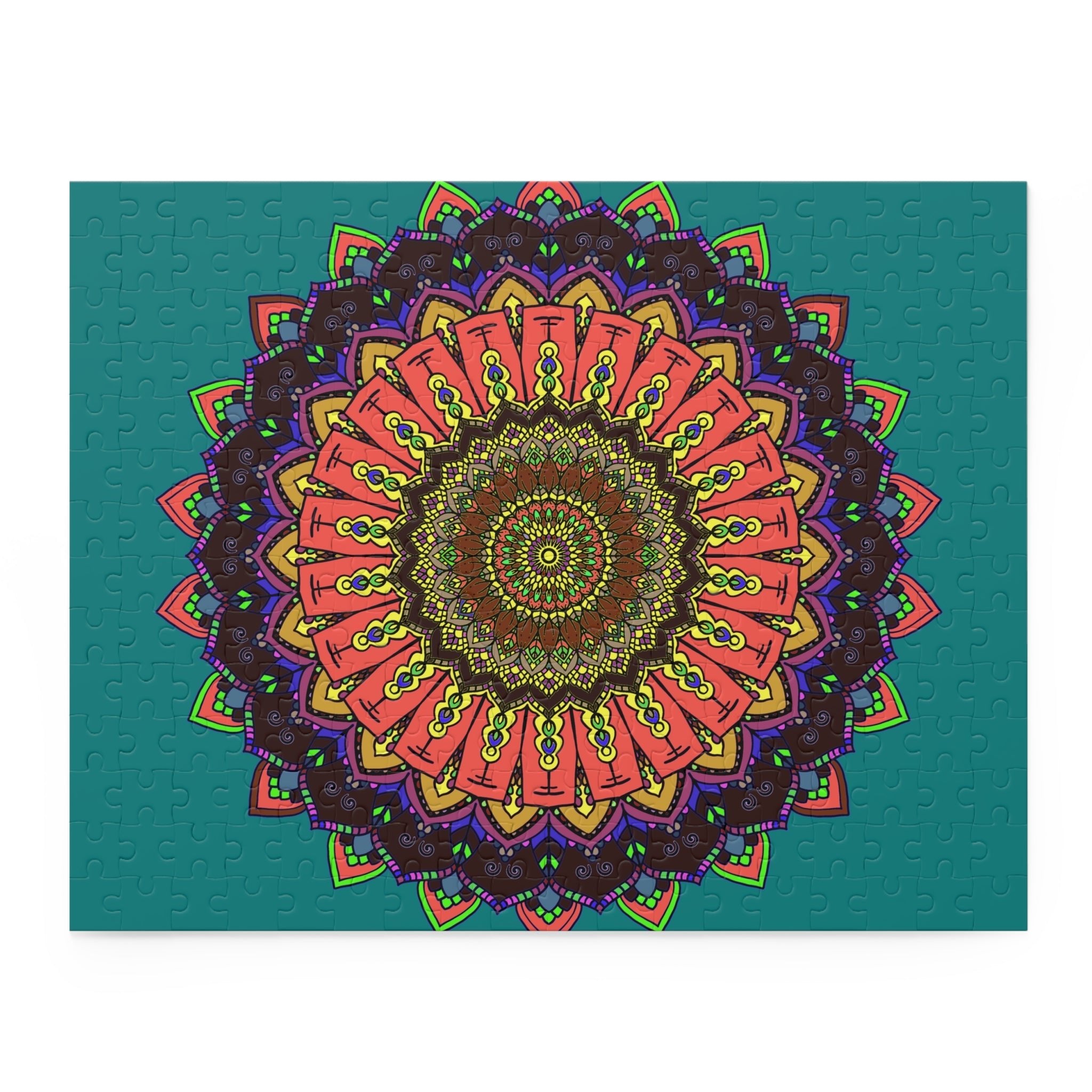 Tauchen Sie mit unserem faszinierenden Mandala-Puzzle in ein lebendiges Kaleidoskop aus Farben und komplexen Mustern ein. Dieses atemberaubende Kunstwerk besticht durch sein faszinierendes Design aus wirbelnden Formen und kräftigen Farbtönen, das Sie in seinen Bann zieht und ein Gefühl der Ruhe und Freude hervorruft. Perfekt für Kunstliebhaber und Puzzle-Liebhaber zugleich, verwandelt dieses verlockende Puzzle das Alltägliche in ein farbenfrohes Abenteuer und ist eine wunderbare Ergänzung für Ihre Sammlung.