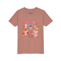 Peppen Sie die Garderobe Ihres Kindes mit diesem bezaubernden Kurzarm-T-Shirt für Kinder auf – perfekt für Freizeitausflüge und Spielverabredungen. Verziert mit verspielten Tierillustrationen in einem skurrilen Blumendesign strahlt dieses T-Shirt eine warme, freundliche Atmosphäre aus und ist eine wunderbare Ergänzung für jedes Kinderoutfit. Ob Geburtstagsfeier, Familientreffen oder einfach ein lustiger Tag im Park – dieses T-Shirt bringt Freude und Komfort zu jedem Anlass. Ideal für Kinder, die Tiere lieben und ihren Spielgeist ausleben, ist es ein fantastisches Geschenk für viele Anlässe, einschließlich Feiertage und Schulanfangsveranstaltungen.