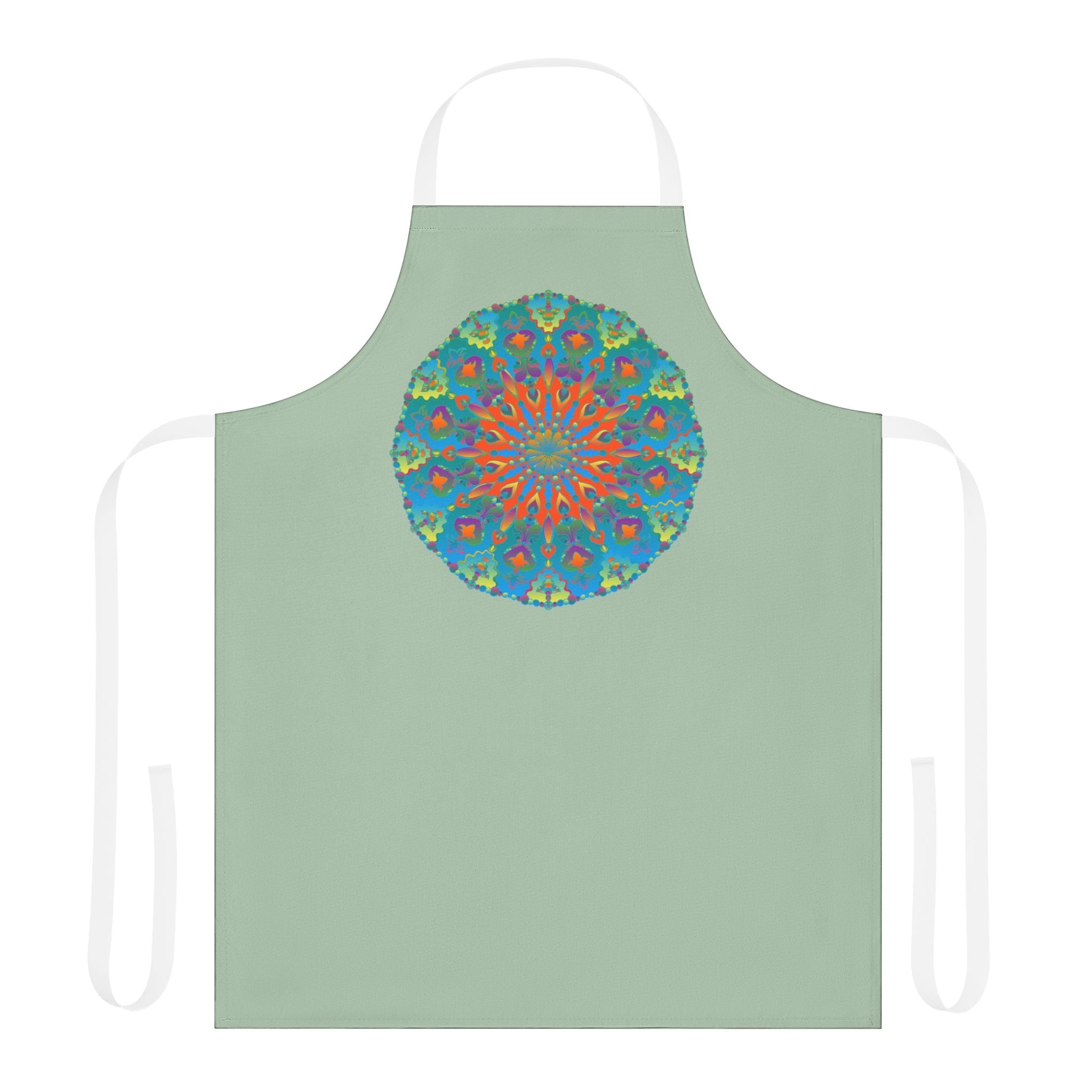 Salbeigrüne Mandala-Küchenschürze mit lebendigem Kunstdesign