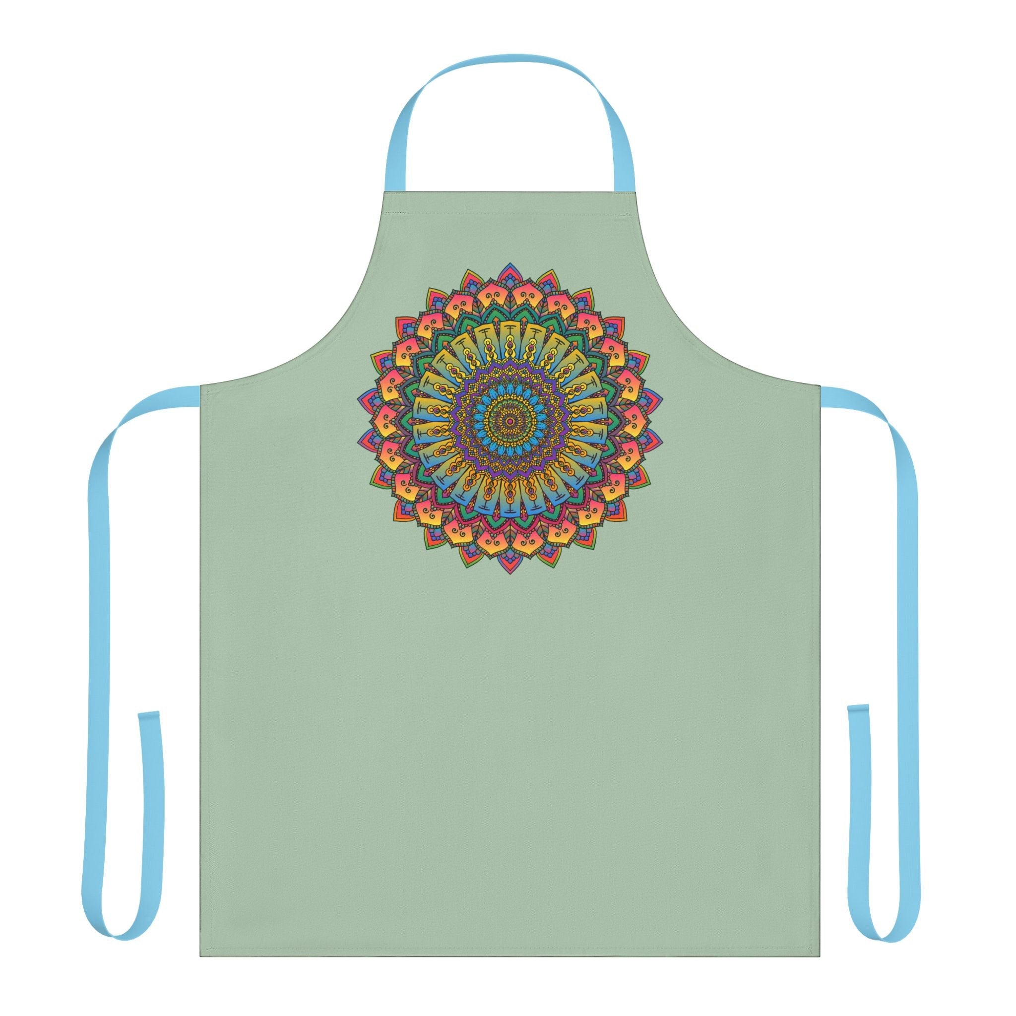 Salbeigrüne Mandala-Schürze mit farbenfrohem spirituellem Design