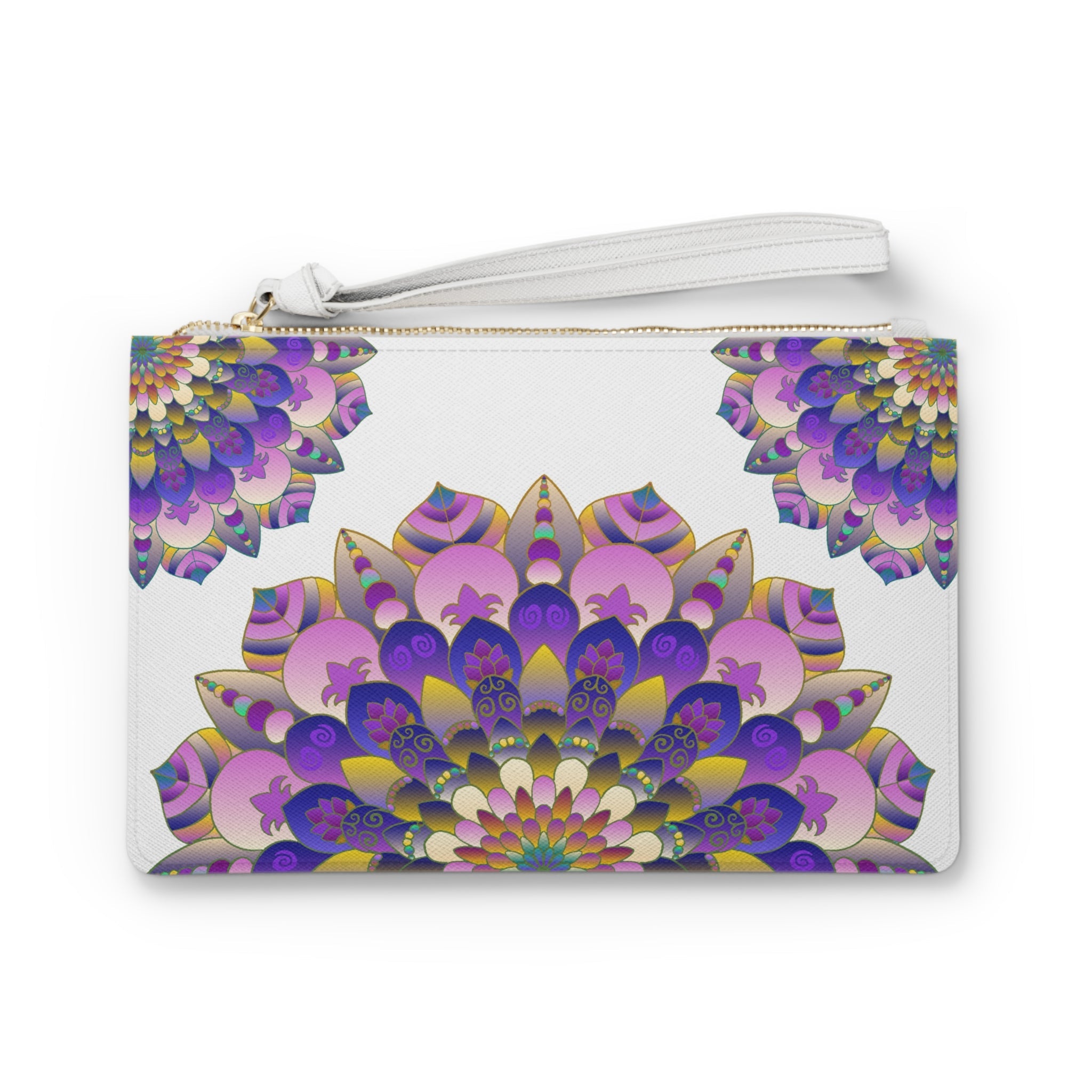 Veredeln Sie Ihren Stil mit einer Clutch mit künstlerischem Blumen-Mandala für böhmische Eleganz