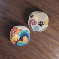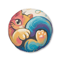 Curled Cat Hug Round Floor Pillow