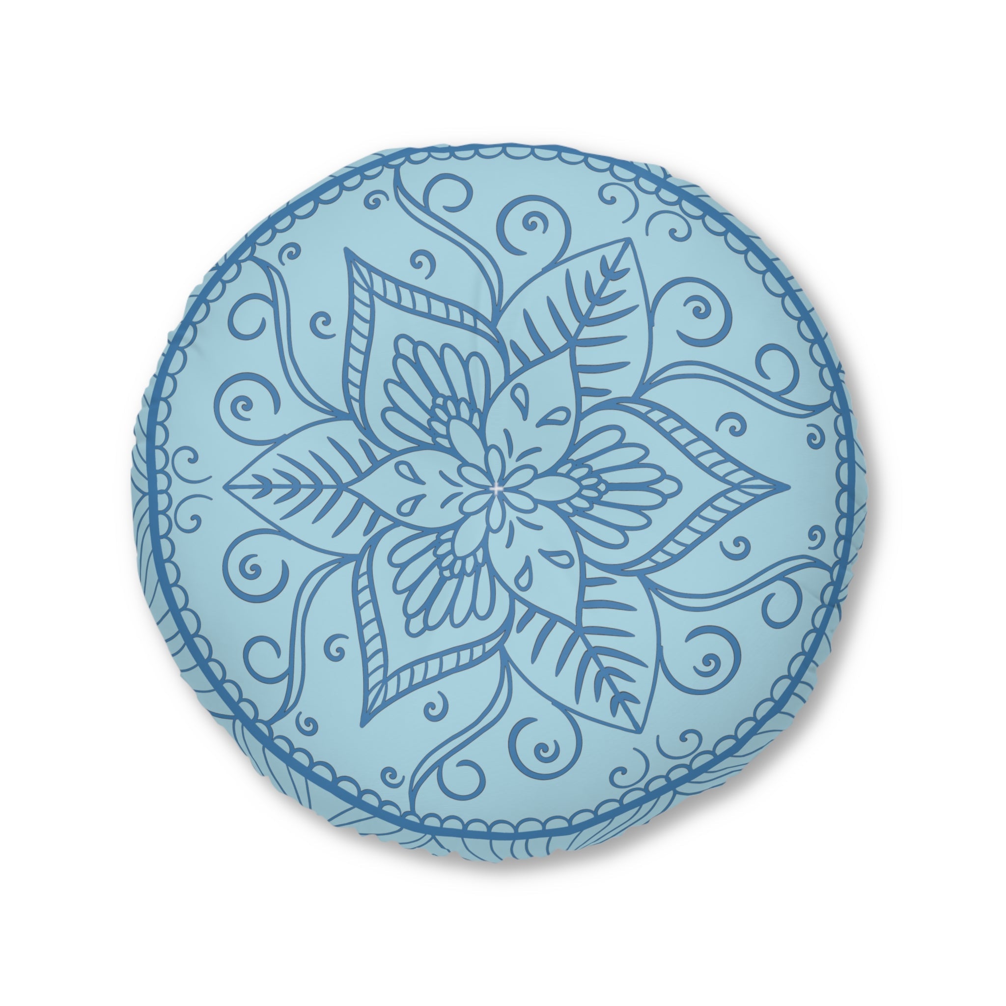 Experience the serene beauty of a stunning mandala design, where intricate patterns dance across a tranquil steel blue canvas. This captivating floor cushion brings a touch of artistry and elegance to your home, serving as a vibrant centerpiece that invites mindfulness and comfort into your space.