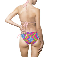 Immerse yourself in a vivid world of color and design with this enchanting bikini set, adorned with mesmerizing mandala illustrations. Each intricate pattern bursts with vibrant hues, evoking a sense of joy and tranquility as you stroll along sun-kissed shores. This stunning swimwear piece transforms any beach day into an artful retreat, blending timeless tradition with contemporary flair.