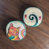 Place this bright, smiling cat cushion in a corner and the room immediately feels lighter and more playful. The centered mandala-cat draws eyes and invites you to sit, curl up, or rest your chin on its soft presence. ...