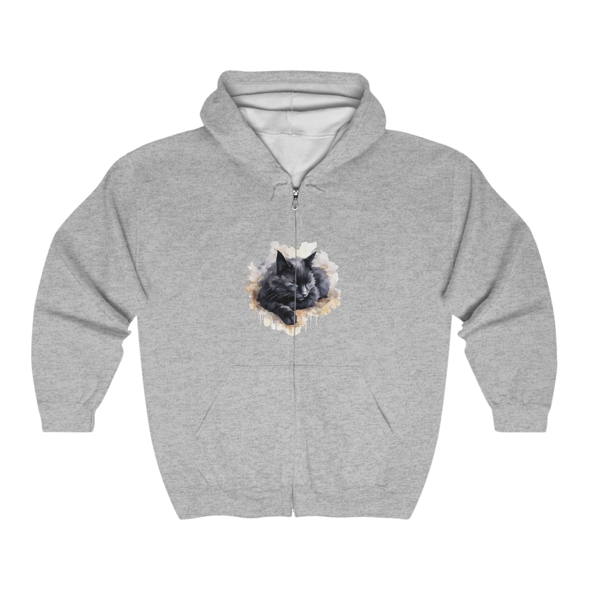 Sleepy Black Cat Hoodie With Serene Watercolor Design