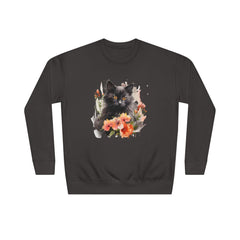 Artistic Cat & Floral Watercolor Sweatshirt for a Playful Spirit