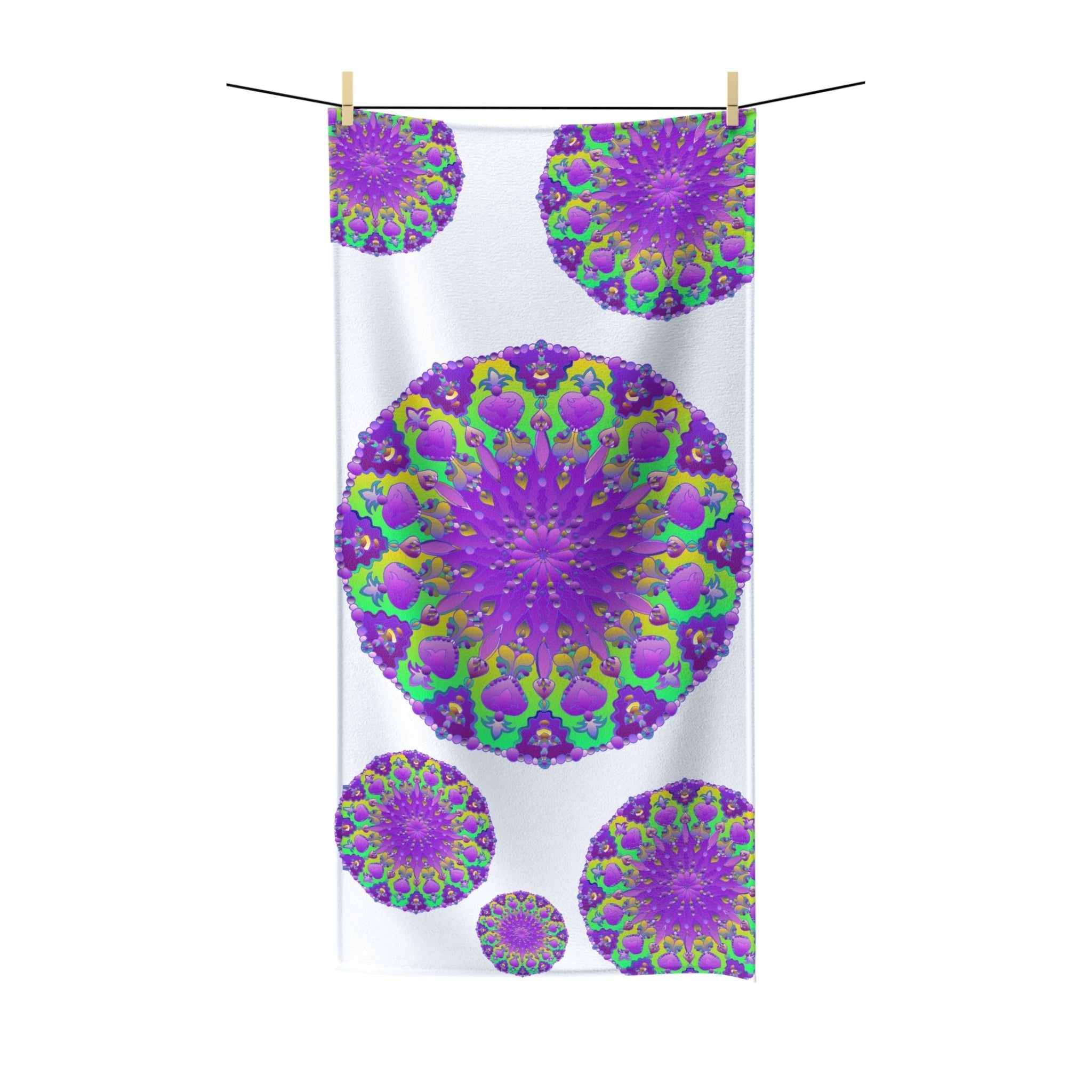 Be captivated by the enchanting beauty of a vibrant mandala, where purple hues dance harmoniously across intricate floral patterns. This stunning beach towel transforms any outing into a celebration of bohemian elegance, immersing you in a world of color and artistry. Perfectly crafted for those who cherish individuality, this piece is more than just a towel; it's a radiant expression of creativity and style.