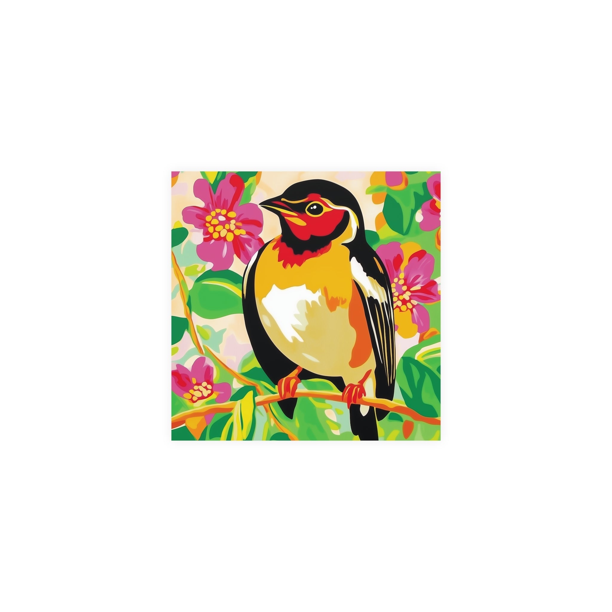Brighten your space with a splash of joy! This vibrant artwork features a cheerful bird perched gracefully on a branch, surrounded by delicate flowers. The bold colors dance across the canvas, creating a delightful scene that instantly uplifts your mood and transforms any room into a cheerful haven.