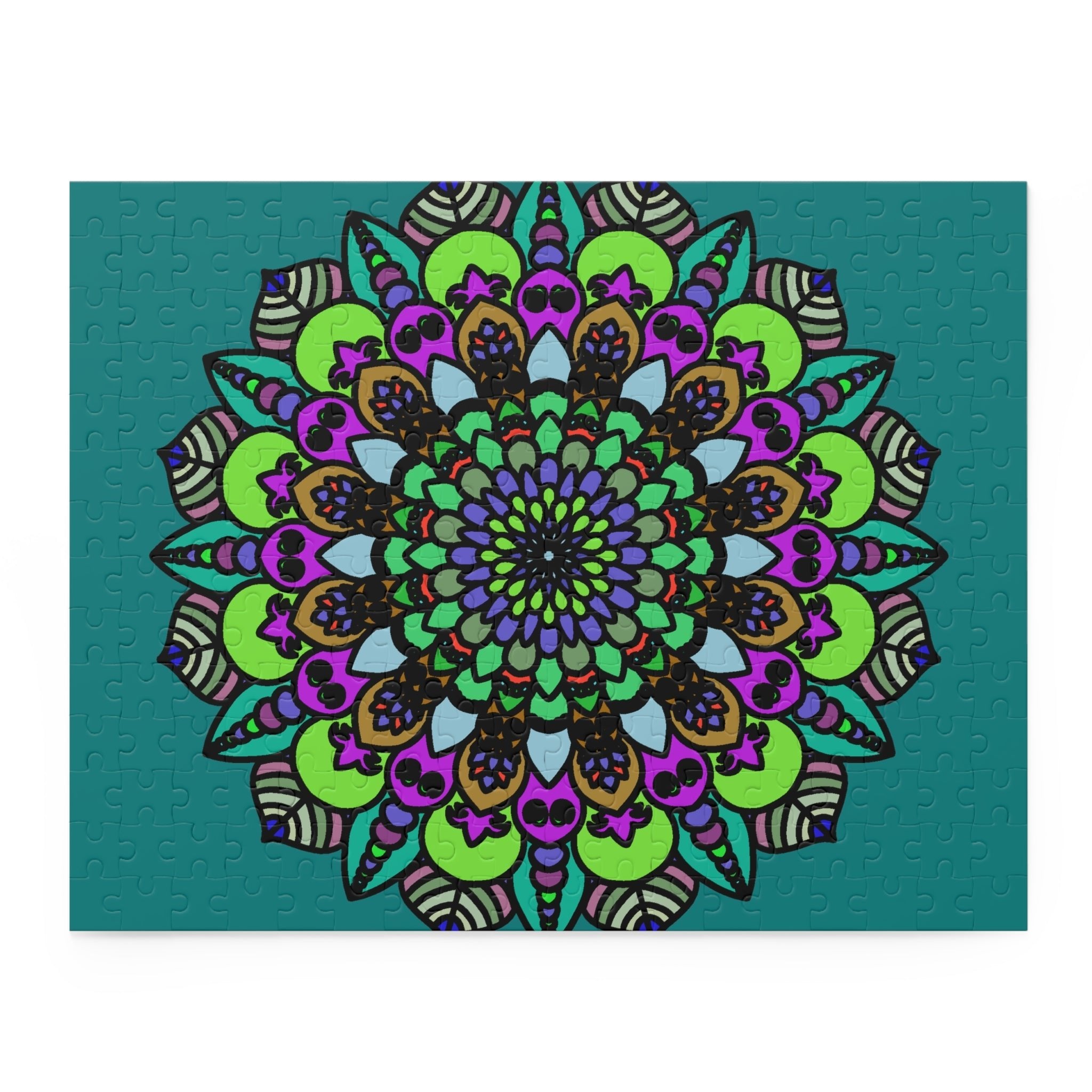 Step into a vibrant world of creativity with this captivating mandala puzzle, where intricate designs intertwine to create a mesmerizing visual experience. The bold colors—a dance of rich greens, deep purples, and serene blues—invite you to lose yourself in the art as each piece clicks into place, revealing a stunning masterpiece that radiates tranquility and joy.