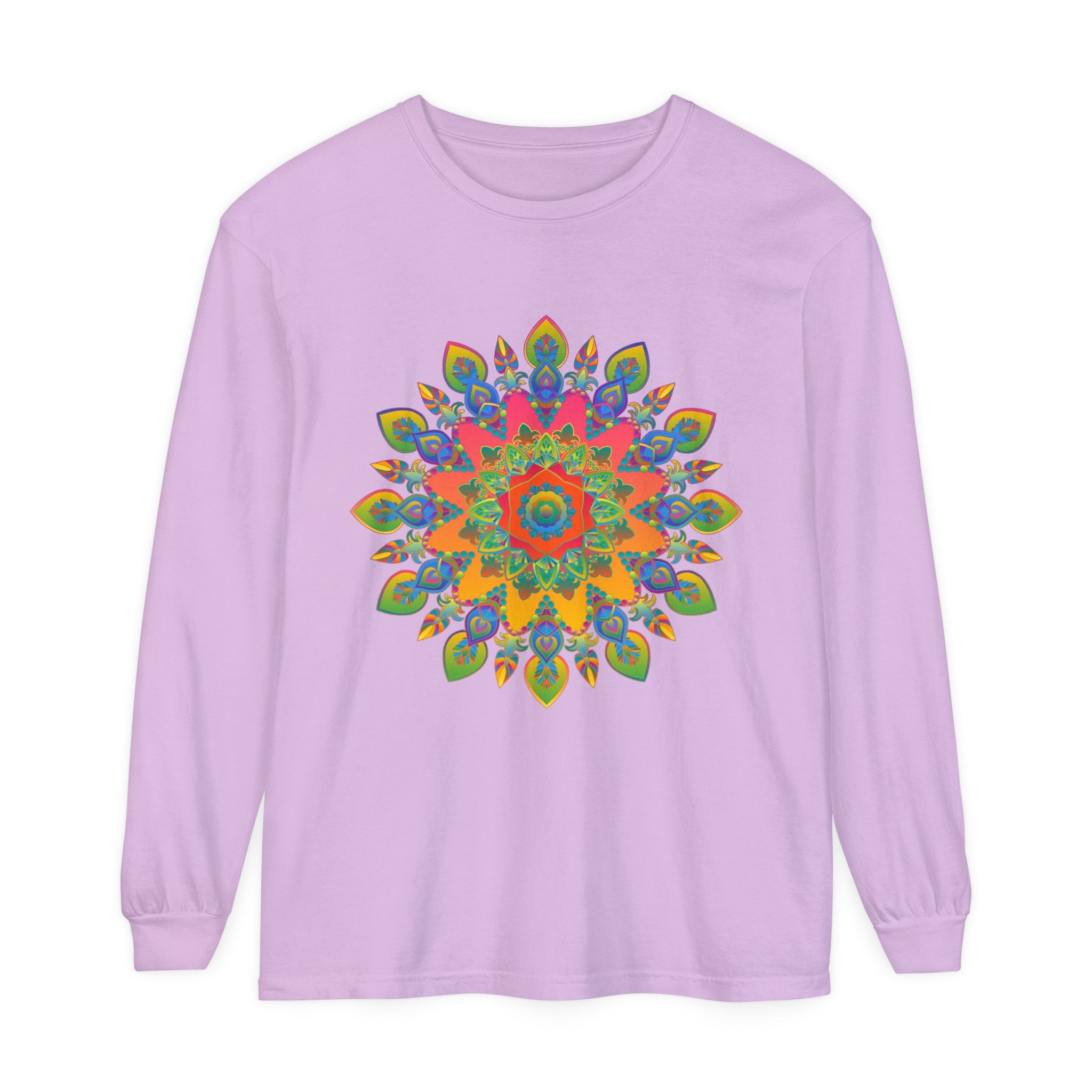 Mandala-Inspired Long Sleeve Tee in Lively Colors and Design