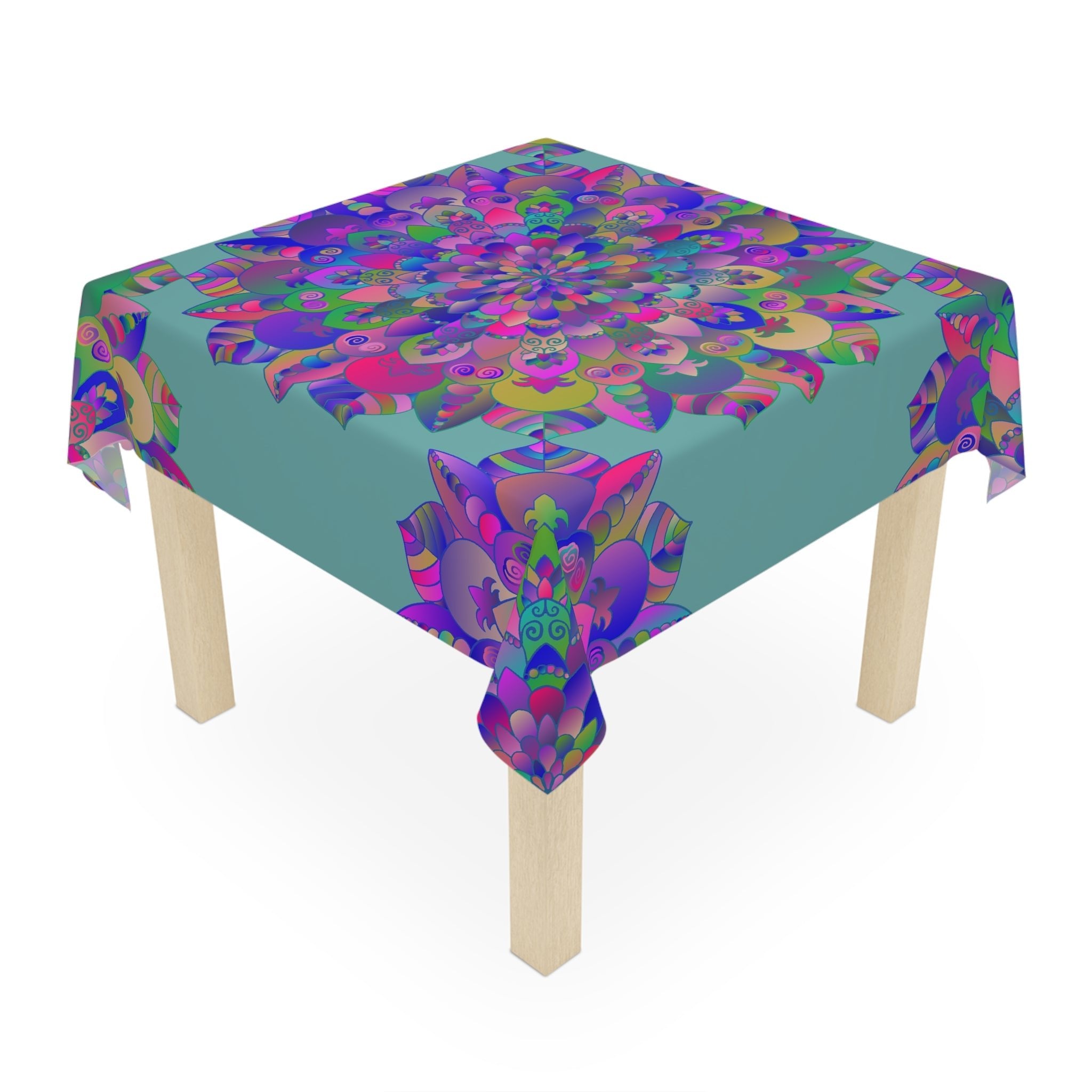 Radiating vibrant energy, this tablecloth transforms your dining area into a captivating oasis of art and color. The intricate mandala design, bursting with whimsical patterns in shades of purple, pink, and sage green, invites you into a world of creativity and tranquility. Every glance at this stunning centerpiece evokes feelings of joy and serenity, making it an essential addition to your home decor.
