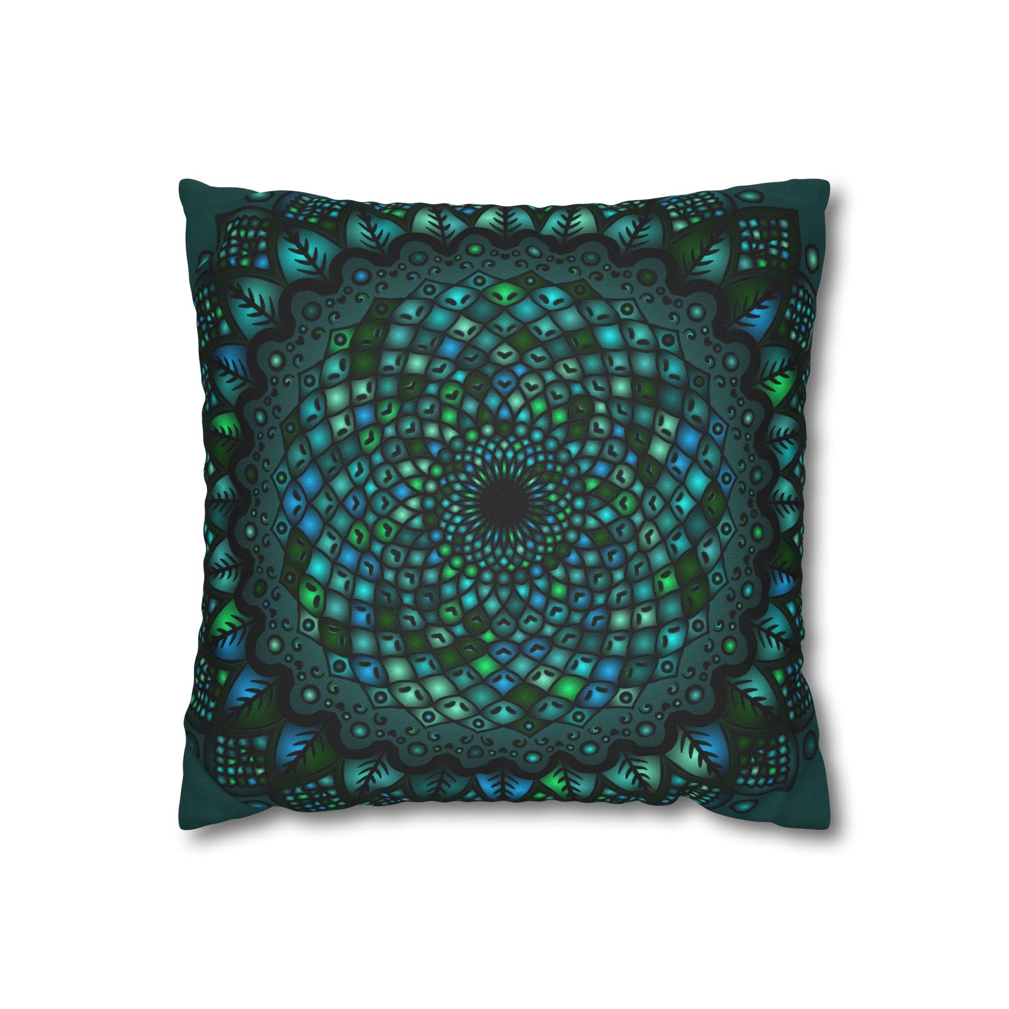 Adorn your living space with a striking mandala design that radiates tranquility and artistic flair. The deep, rich tones of petroleum green intertwine harmoniously, drawing you into a mesmerizing world of intricate patterns and soothing symmetry. This pillowcase is not just an accessory; it's a visual story that invites creativity and calm into your home.