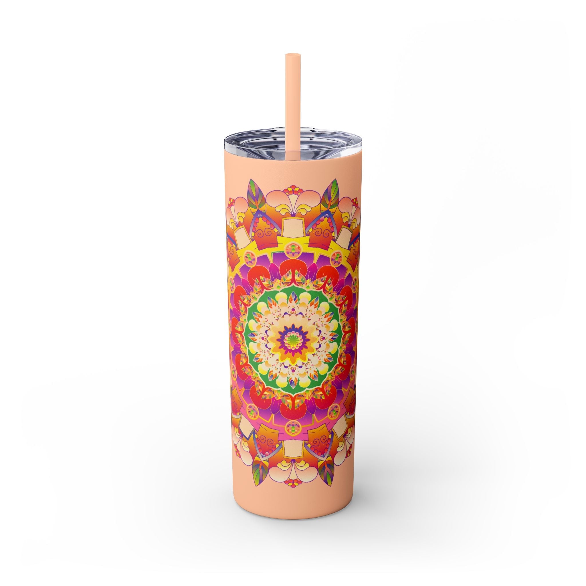 The mesmerizing mandala design on this vibrant tumbler invites you into a world of color and creativity. Each intricate detail unfolds like a blossoming flower, radiating warmth and tranquility. Perfect for those who embrace a lively aesthetic, this 20oz tumbler transforms your daily hydration into a vibrant experience, whether you're enjoying a hot coffee during a cozy morning or sipping iced tea on a sunlit afternoon.