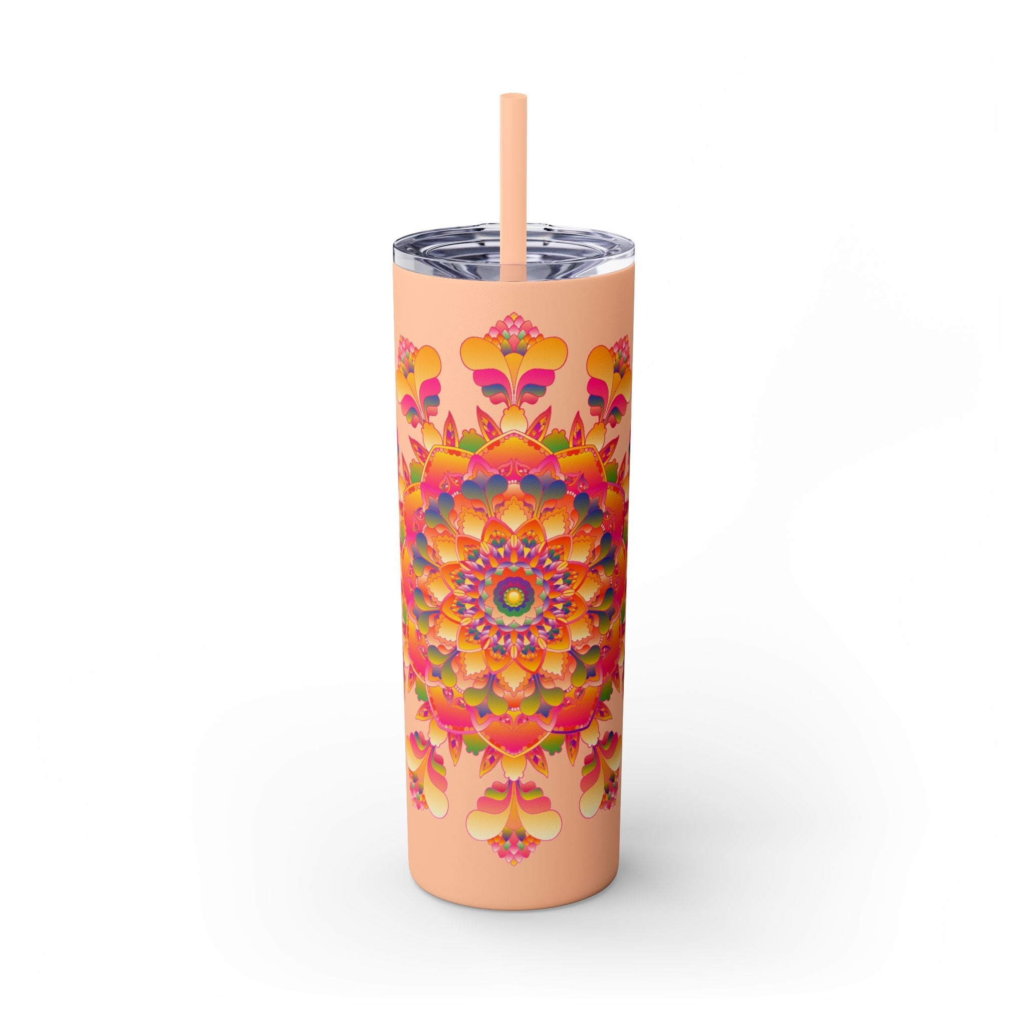 Experience the enchanting allure of intricate mandala designs brought to life in vivid colors. This tumbler features a captivating mandala pattern that radiates warmth and positivity, inviting you to embrace a vibrant lifestyle with every sip. The soft pastel palette beautifully balances calmness and creativity, making it a delightful companion for your daily adventures.