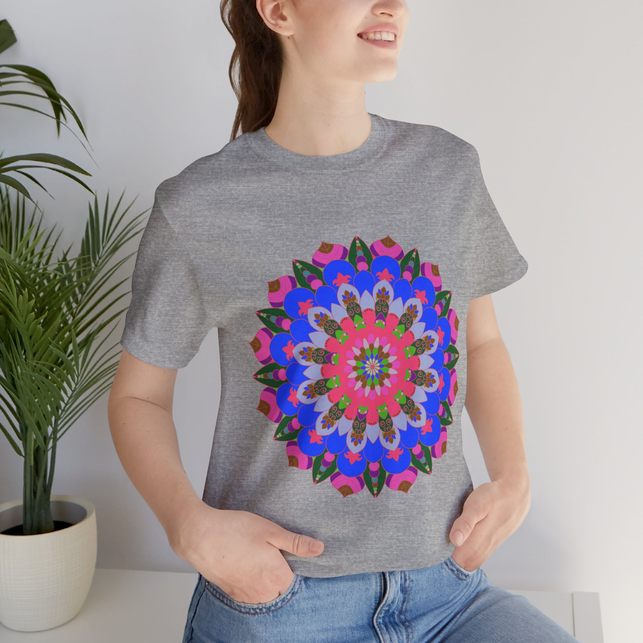 Experience the enchanting beauty of intricate mandala art with this captivating t-shirt. The bold blue and vibrant green palette dances across the fabric, creating a visual feast that inspires creativity and joy. Each geometric swirl and floral detail tells a story, making it an essential addition for anyone looking to express their bohemian spirit through fashion.