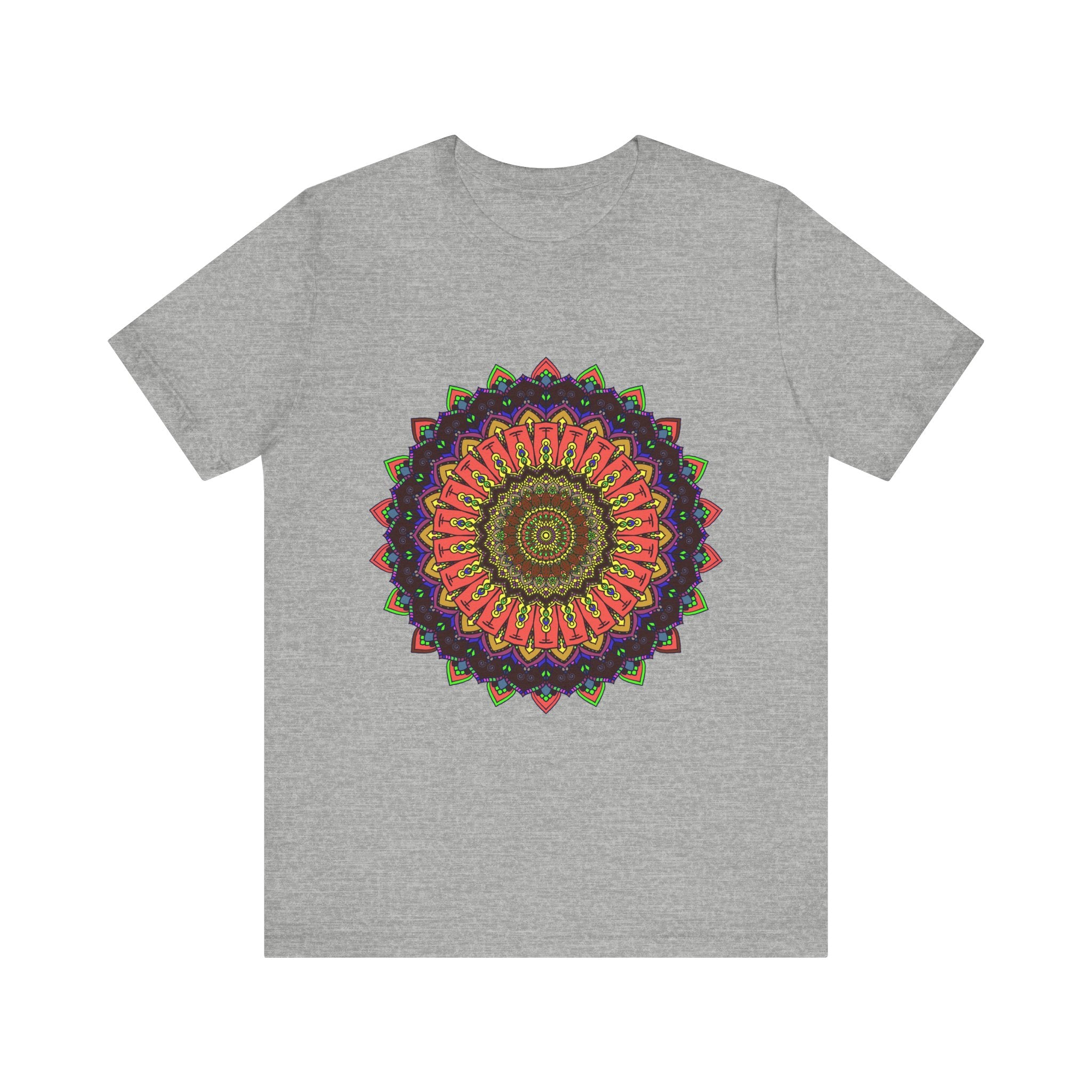 Enveloped in a swirl of vibrant colors, this tee showcases a mesmerizing mandala, captivating the essence of harmony and creativity. Each intricate detail draws the eye, evoking a sense of peace and wonder, making it a striking piece for anyone who embraces art and individuality.