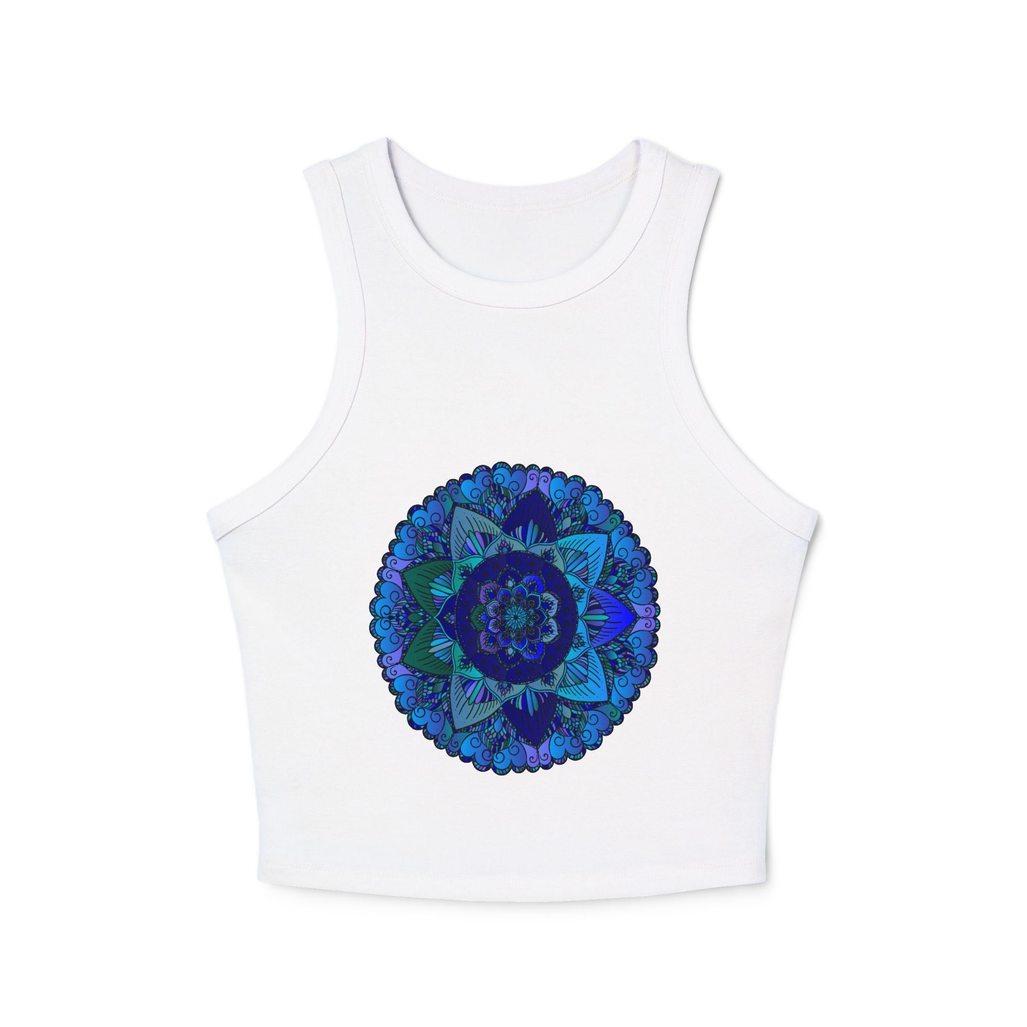Mandala-Inspired Racerback Tank Top in Deep Blue Hues