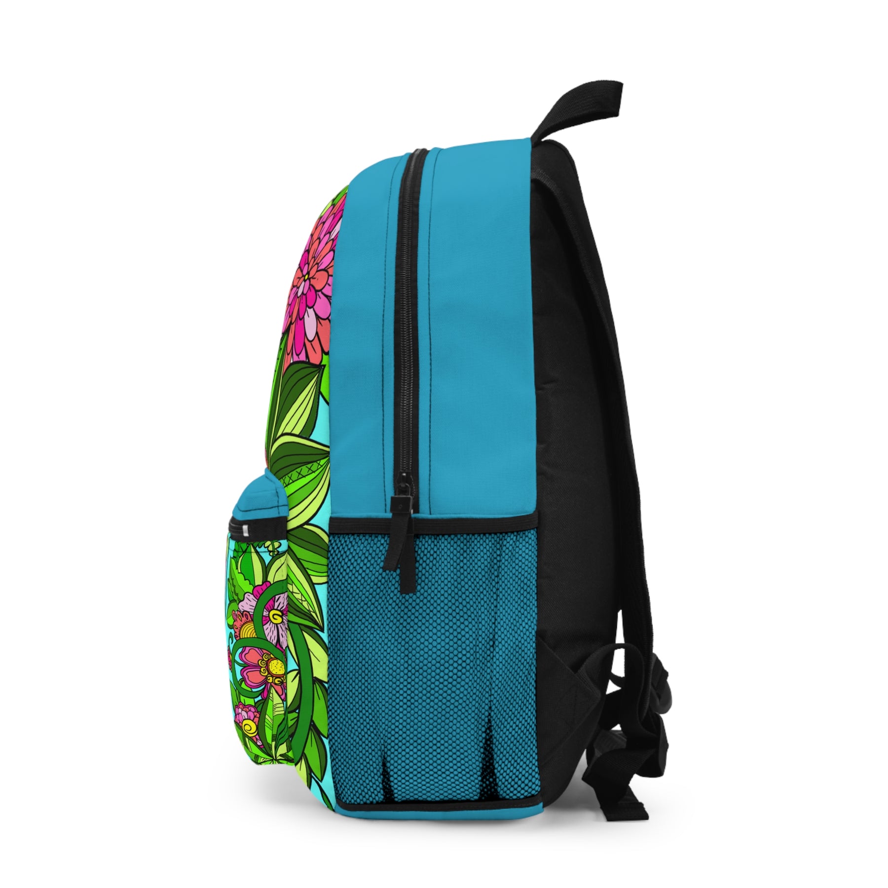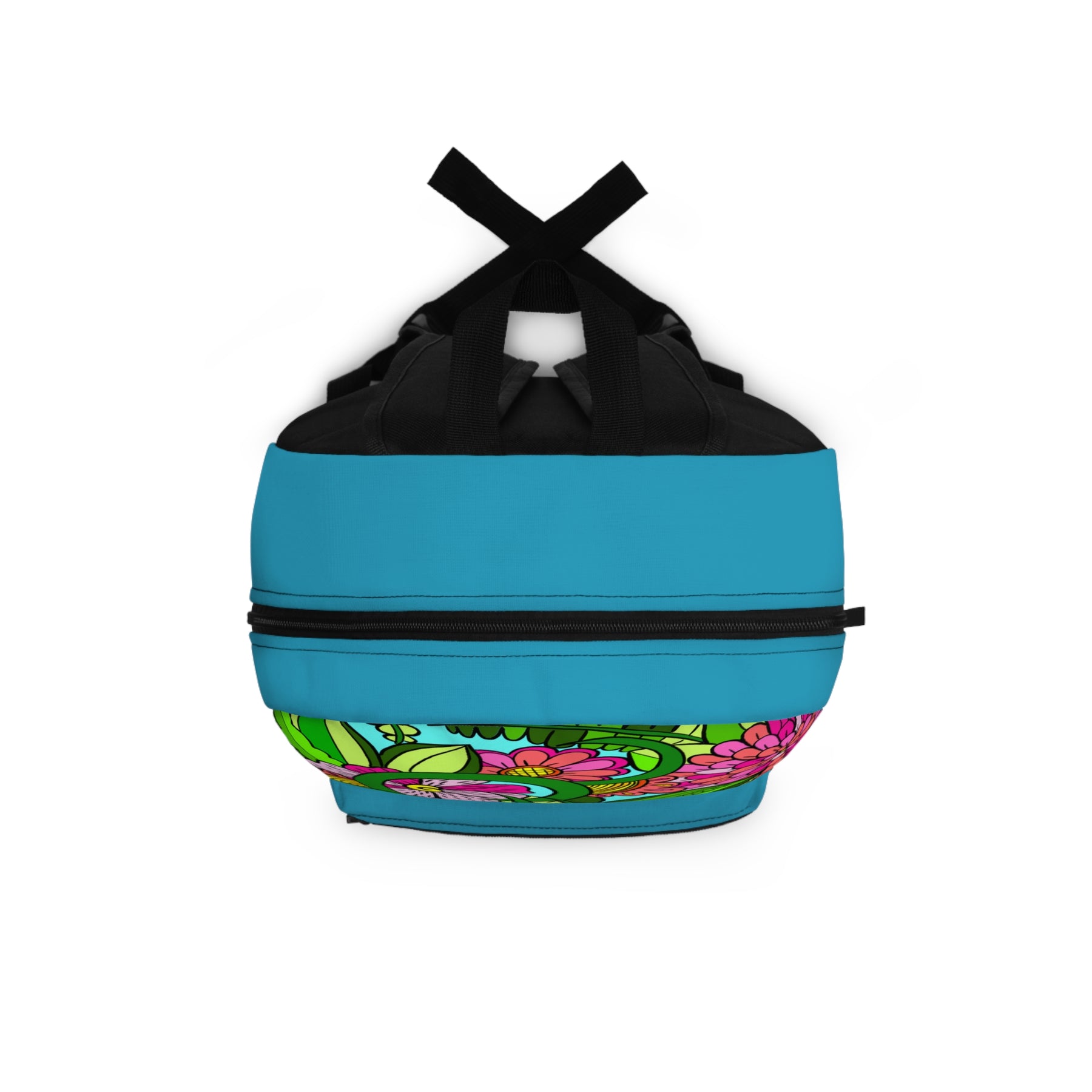 Bright turquoise and vivid pink tones dance together in a breathtaking floral adventure, capturing the essence of nature's exuberance in every detail. This vibrant backpack, adorned with intricate blooms and lush greenery, is not just an accessory—it's a canvas of celebration, ready to accompany you on your journeys. Perfect for students, travelers, or anyone who craves a splash of color in their life, this backpack brings joy to daily routines.
