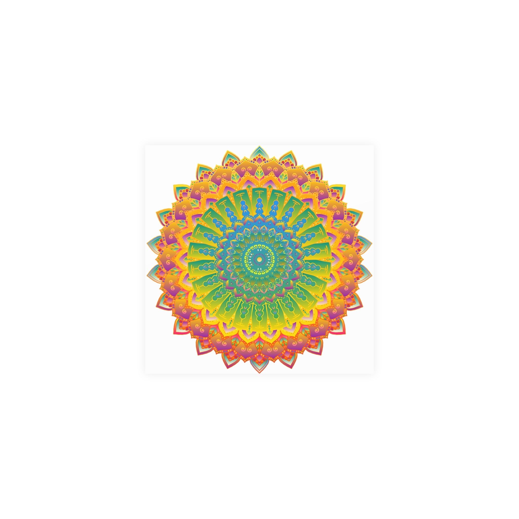 Trasforma il tuo spazio abitativo in un'oasi di colore e tranquillità con questa squisita decorazione murale con mandala. Abbraccia la bellezza che ti circonda e lascia che quest'opera ispiri la consapevolezza nella tua vita quotidiana.