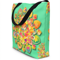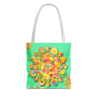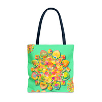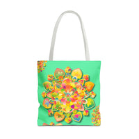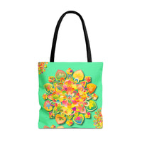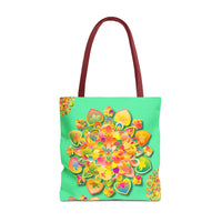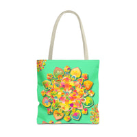 Borsa tote con mandala floreale — Stampa integrale verde tropicale brillante