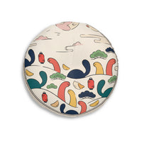 Posizionare questo cuscino rotondo in una stanza solleva immediatamente l'umore: colori vivaci e giocosi e un grazioso gatto rannicchiato invitano ad abbandonarsi, sorridere e soffermarsi. È un compagno caldo e strava...