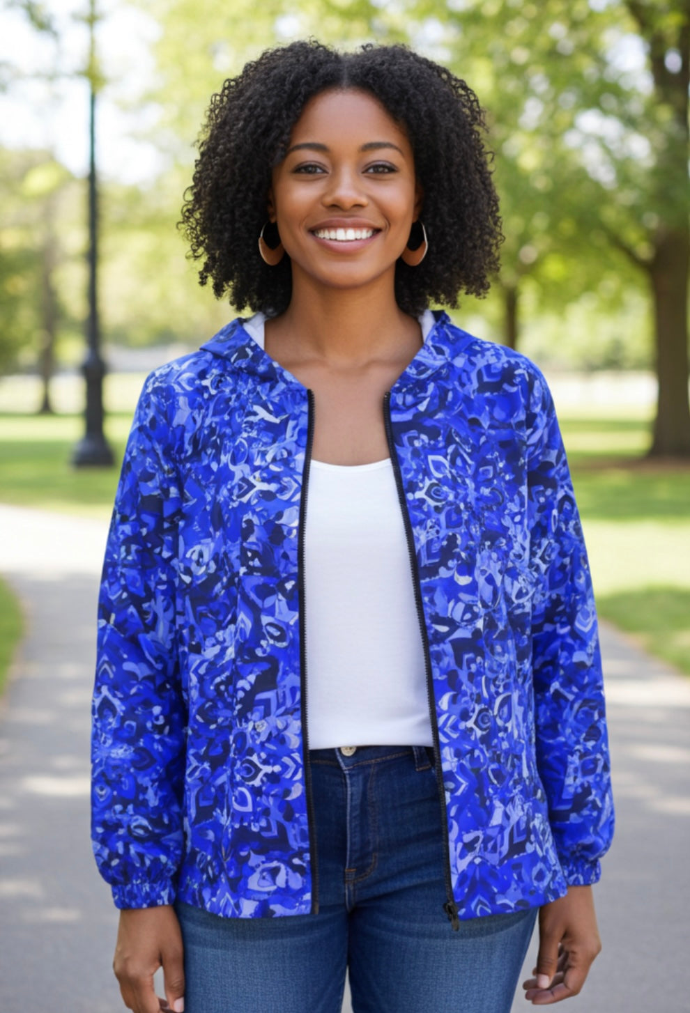 Sperimenta un'esplosione di creatività e vivacità con la nostra splendida giacca a vento, decorata con un'incantevole opera d'arte mandala blululi. Ogni intricato disegno cattura lo sguardo, intrecciando ricchi toni blu e motivi dinamici che evocano un senso di calma e ispirazione. Questa giacca non solo ti protegge dagli elementi, ma trasforma anche il tuo outfit quotidiano in una tela di espressione artistica.