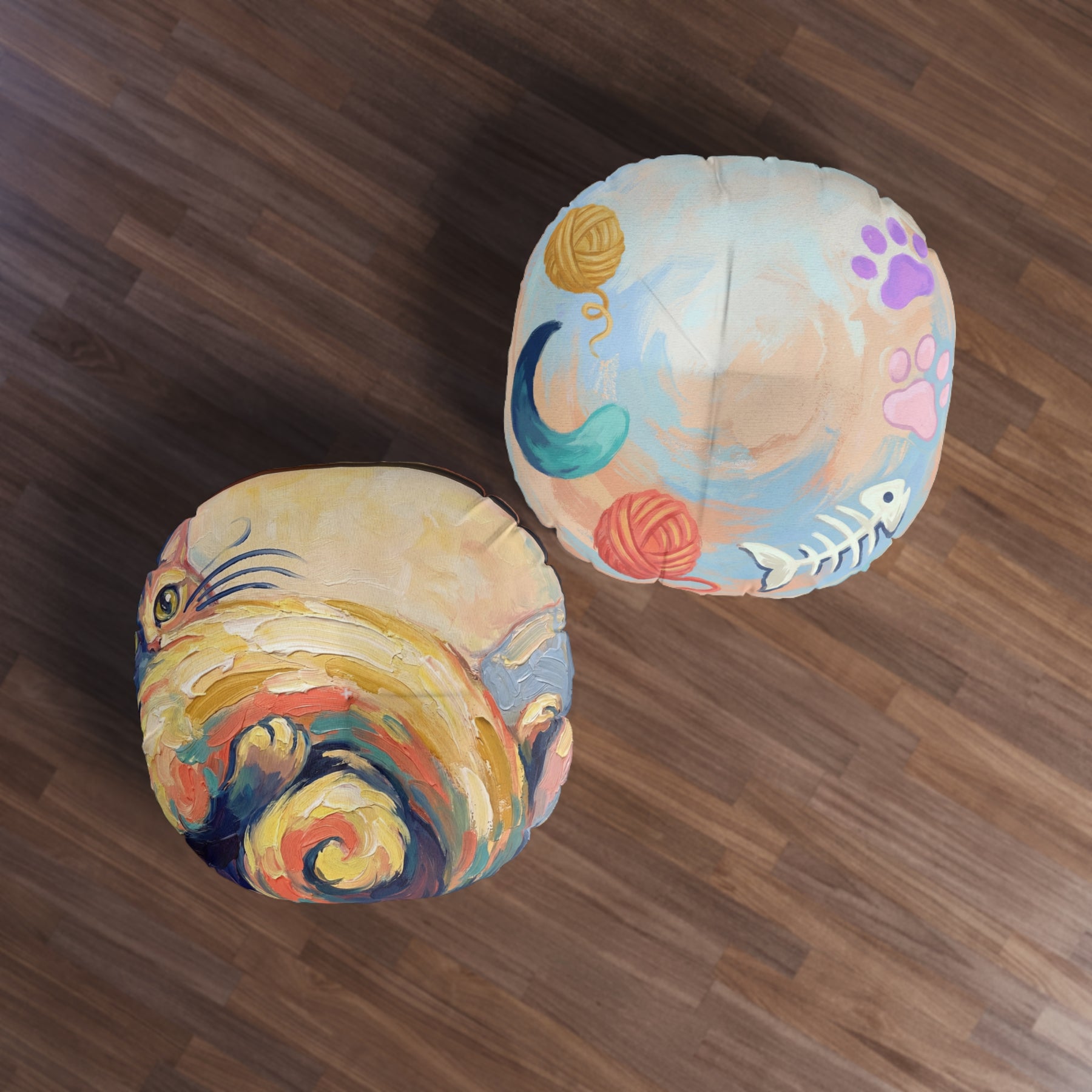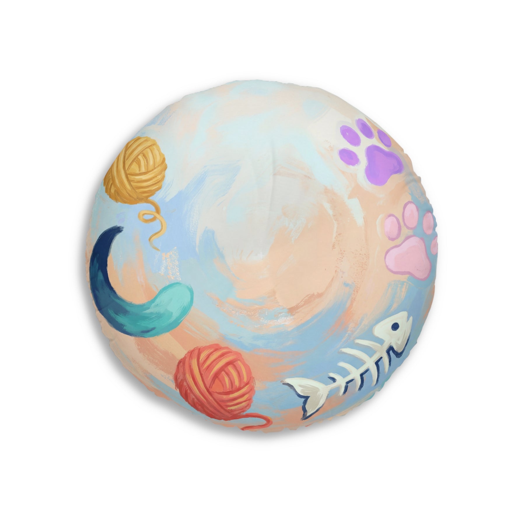 Posizionare questo cuscino rotondo nella stanza evoca immediatamente un caldo sorriso: un punto focale accogliente e solare che invita a lasciarsi andare e a soffermarsi un po'. I colori vivaci e pittorici sollevano l'umore; afferrarlo è come immergersi in un piccolo, bizzarro raggio di sole. La sua presenza allegra rende i pomeriggi tranquilli più dolci e la compagnia più calorosa.