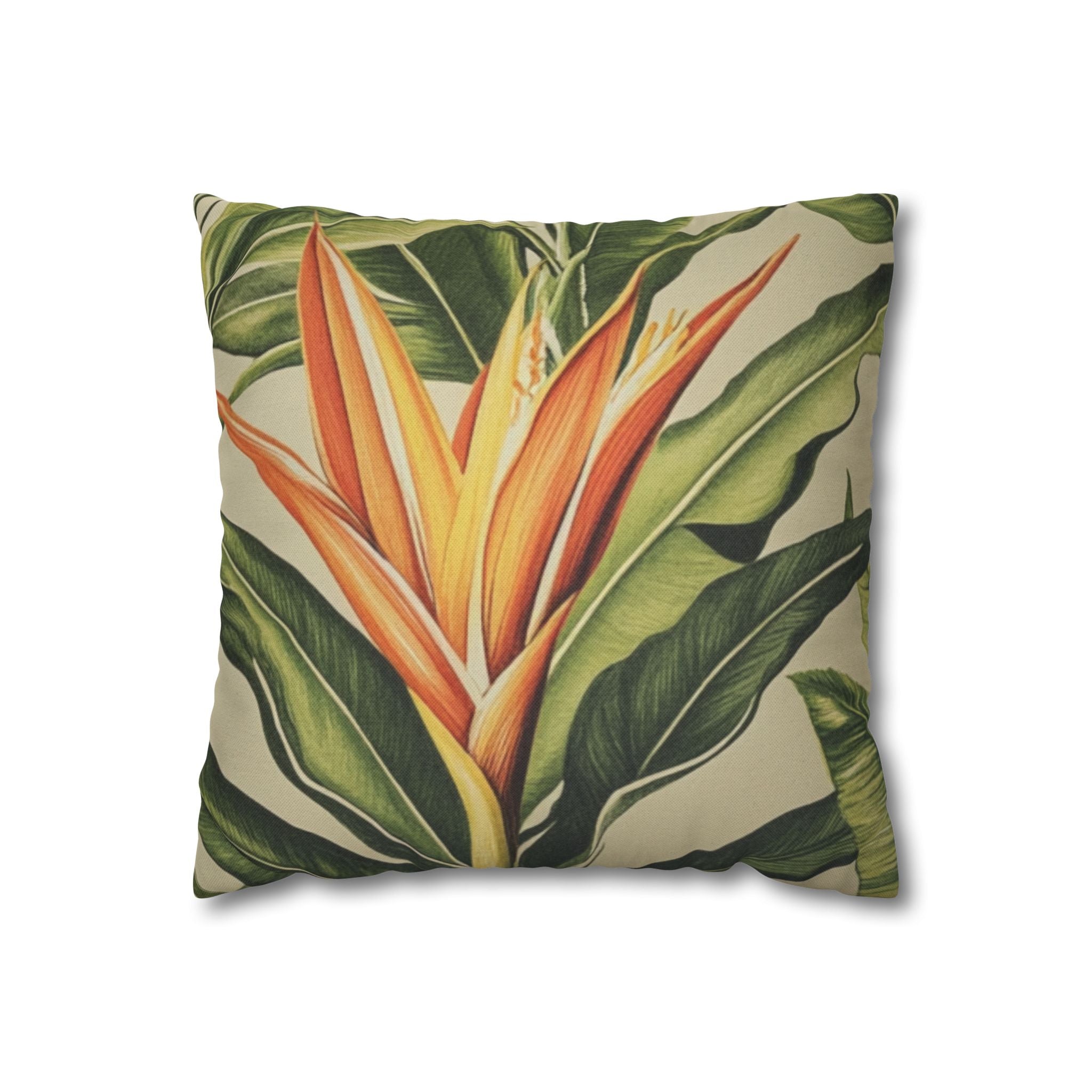 Immersa in tonalità vibranti, questa splendida federa cattura l'essenza di un paradiso tropicale con la sua straordinaria illustrazione di flora esotica. I luminosi petali arancioni e gialli del fiore danzano tra le lussureggianti foglie verdi, creando un punto focale accattivante che trasforma qualsiasi spazio in un rifugio di serenità. Progettata per infondere nella tua casa la bellezza della natura, questa federa botanica è il complemento perfetto per chi ama la vita all'aria aperta.