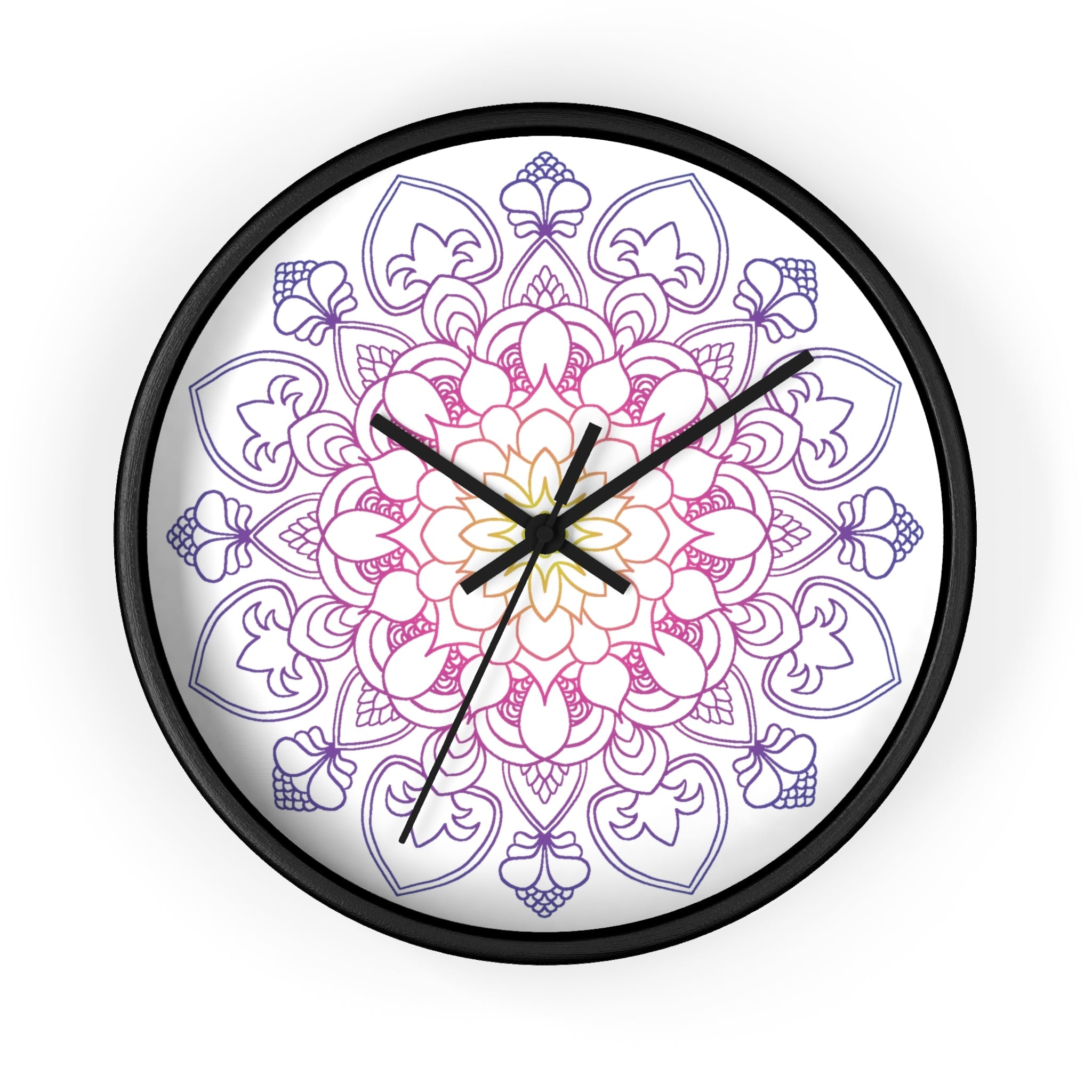 Decora la tua parete con una vibrante celebrazione di arte e tranquillità! Questo splendido orologio mandala presenta un incantevole motivo floreale in tenui toni rosa e viola, che ricorda un tranquillo giardino all'alba. Le sue immagini accattivanti impreziosiscono senza sforzo qualsiasi ambiente, invitando all'ammirazione e creando un'atmosfera rilassante che risuona sia con gli amanti dello yoga che con gli amanti dello stile bohémien.