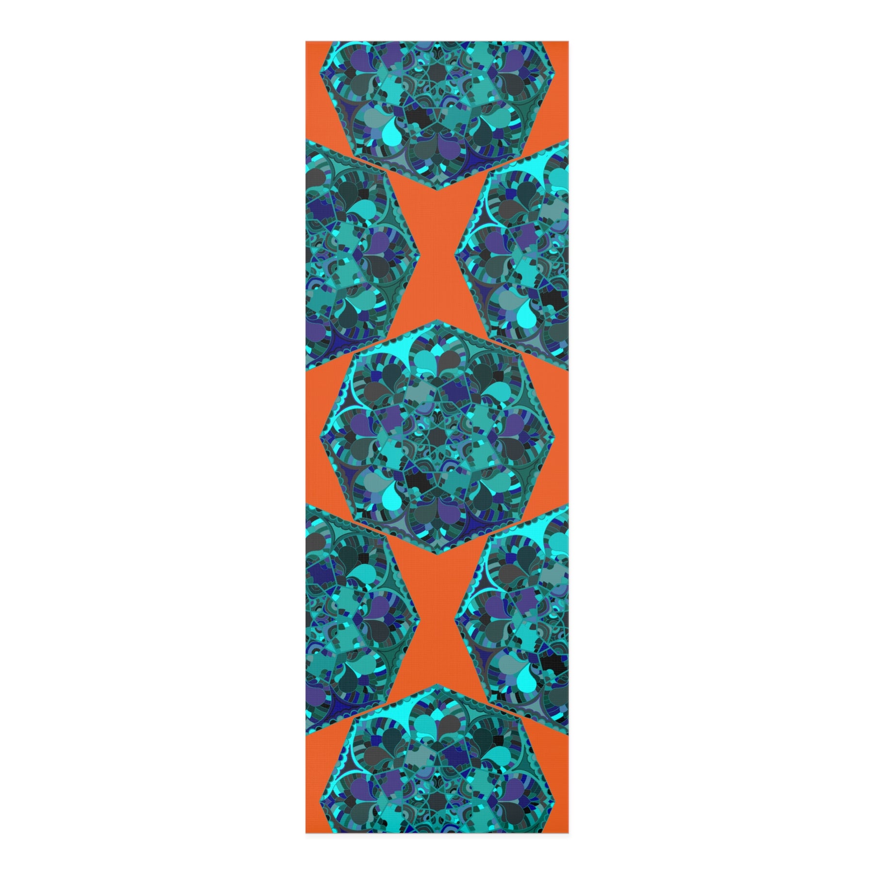 Immergiti nel vibrante mondo dei colori con questo splendido tappetino da yoga, caratterizzato da un accattivante design geometrico che danza con sfumature di verde acqua e arancione. Ogni spirale e ogni forma ti invitano in un'affascinante sinfonia visiva, energizzando la tua pratica ed elevando il tuo spirito. Questo straordinario tappetino non solo illumina la tua routine, ma incarna anche un senso di tranquillità e concentrazione, rendendolo il compagno perfetto sia per una meditazione serena che per allenamenti dinamici.