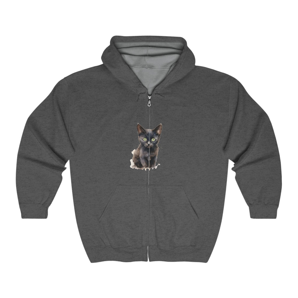 Felpa con cappuccio con gatto nero incantevole: un tocco di eleganza spettrale