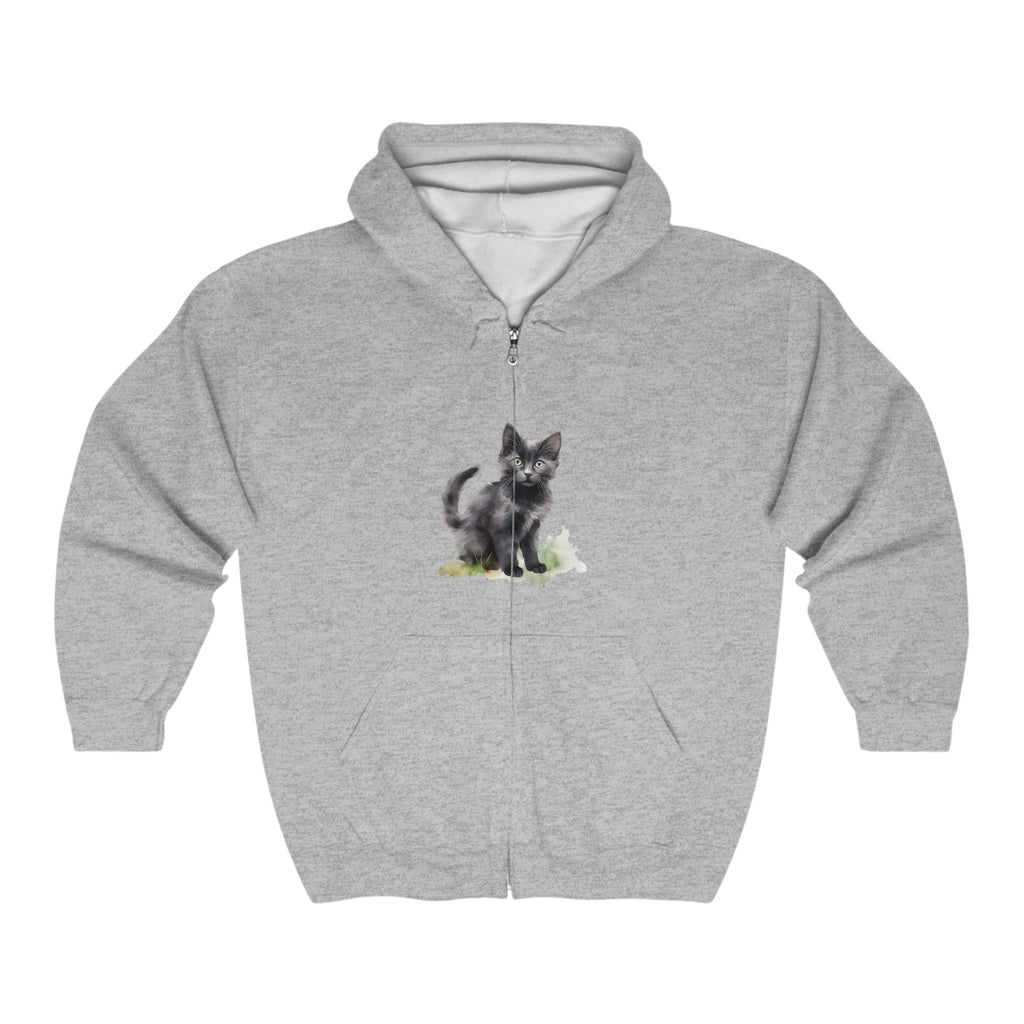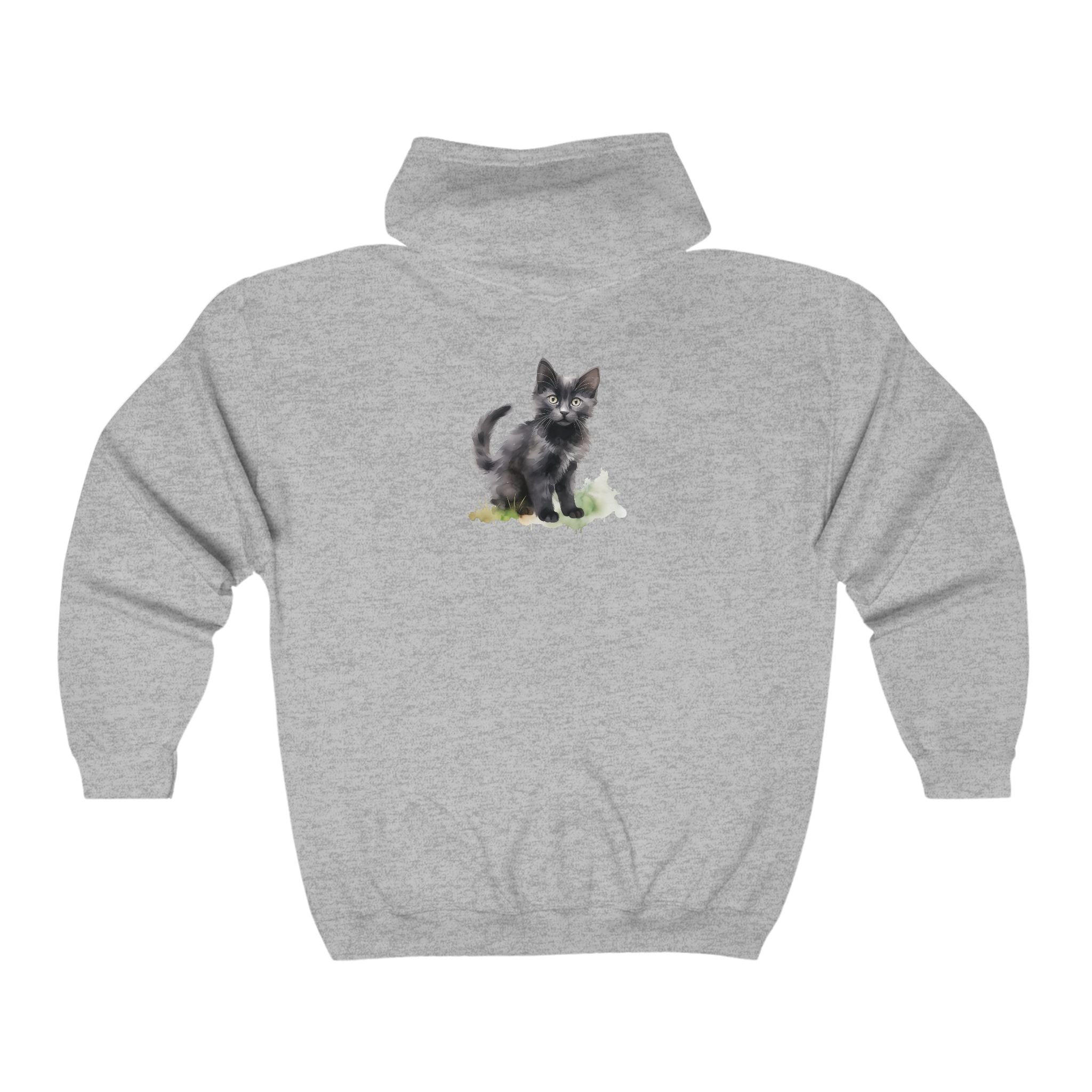 Immergiti in un mondo fantasioso dove l'arte incontra il comfort con questa incantevole felpa con cappuccio decorata con un accattivante gatto nero. Questo design affascinante emana calore, invitandoti ad accogliere il tuo amante dei gatti interiore, mentre le delicate tonalità acquerellate si fondono perfettamente con la sua estetica giocosa ma sofisticata.