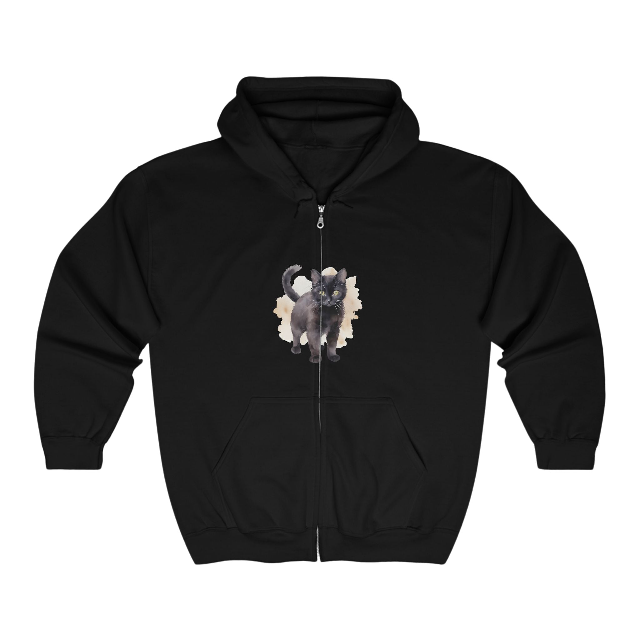 Lasciati conquistare dall'incantevole fascino di un bizzarro gatto nero, i cui brillanti occhi verdi brillano di malizia su un delicato sfondo acquerello. Questa comoda felpa con cappuccio incarna l'incantevole spirito del fascino felino, invitandoti ad abbracciare il tuo amore per i nostri amici pelosi ogni volta che la indossi. Perfetta per gli amanti degli animali, questa felpa coniuga perfettamente arte e comfort, diventando un capo indispensabile per ogni uscita casual.