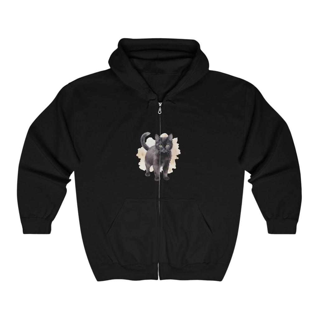 Felpa con cappuccio con illustrazione di gatto nero - Design incantevole con occhi verdi
