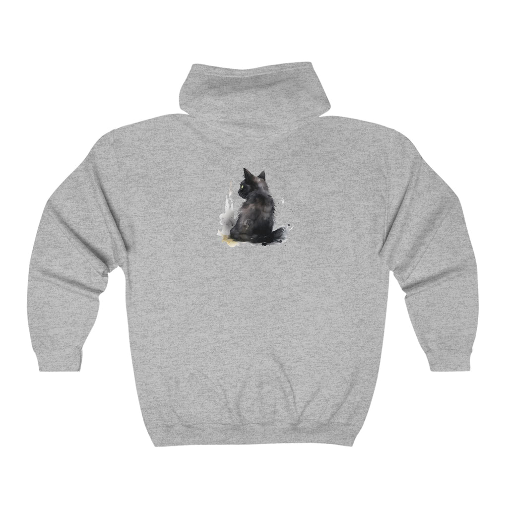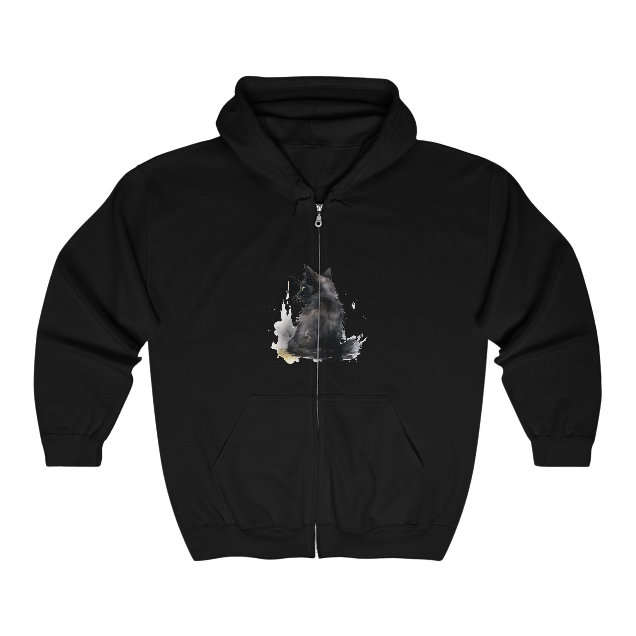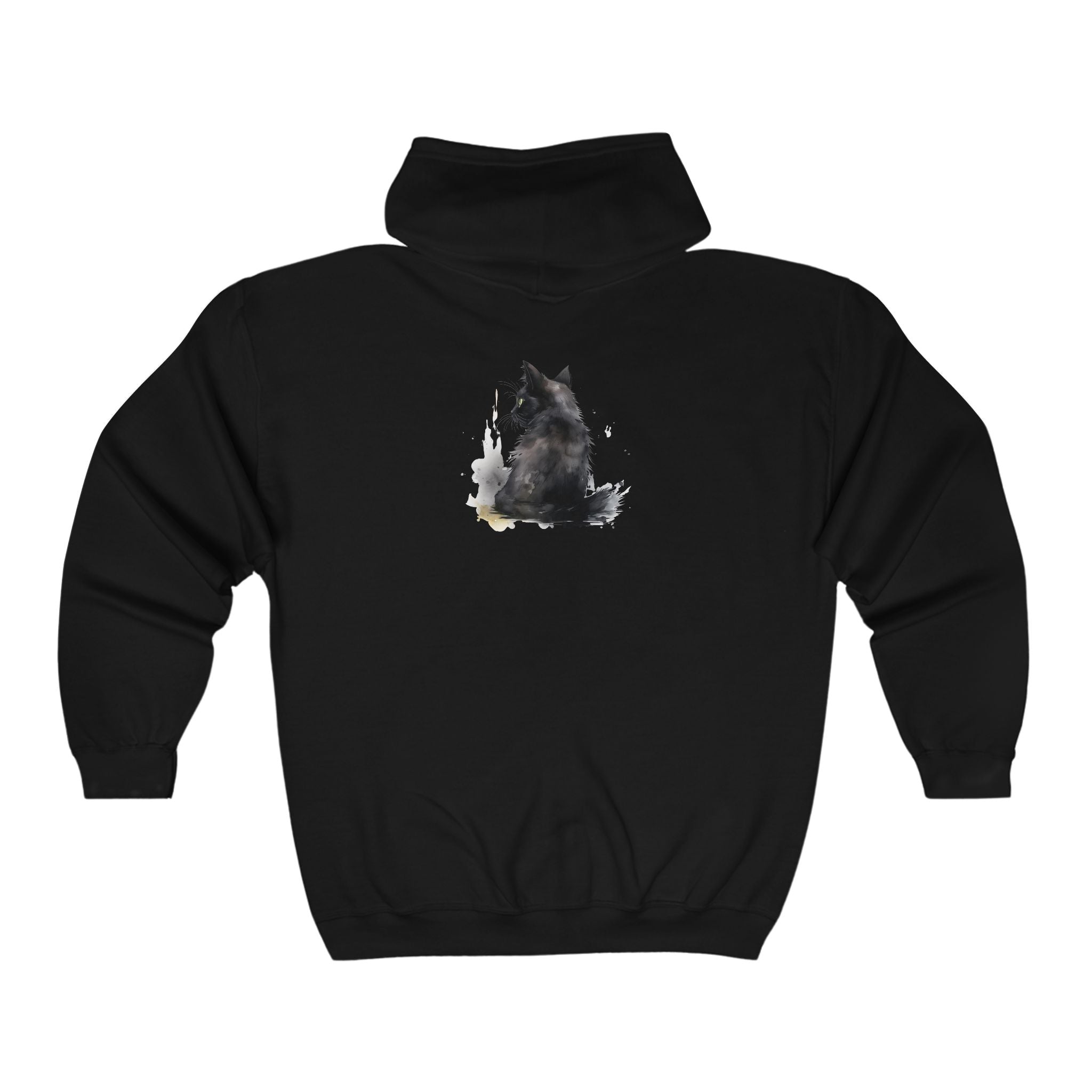 Felpa con cappuccio artistica con gatto nero: abbraccia l'eleganza accogliente