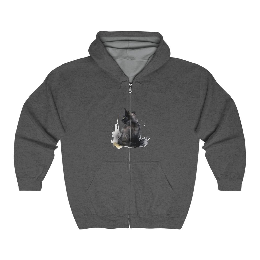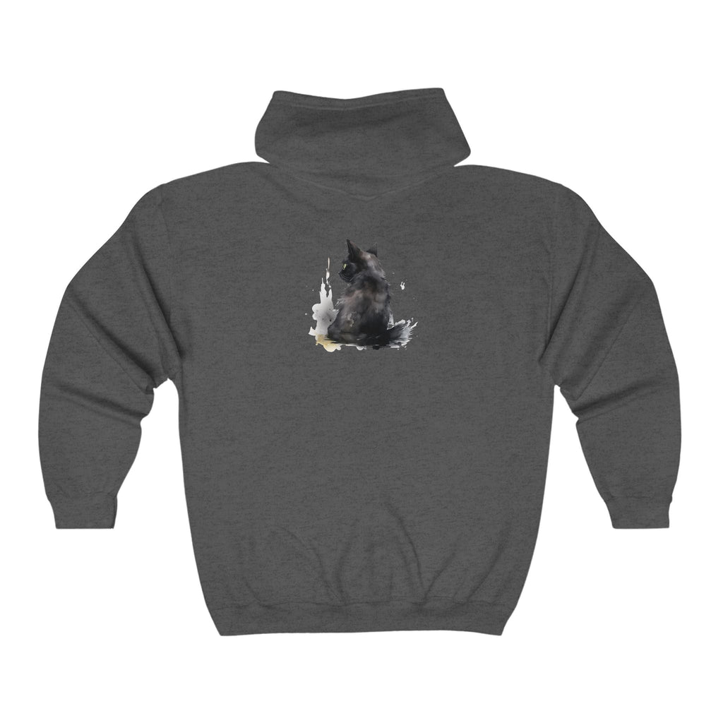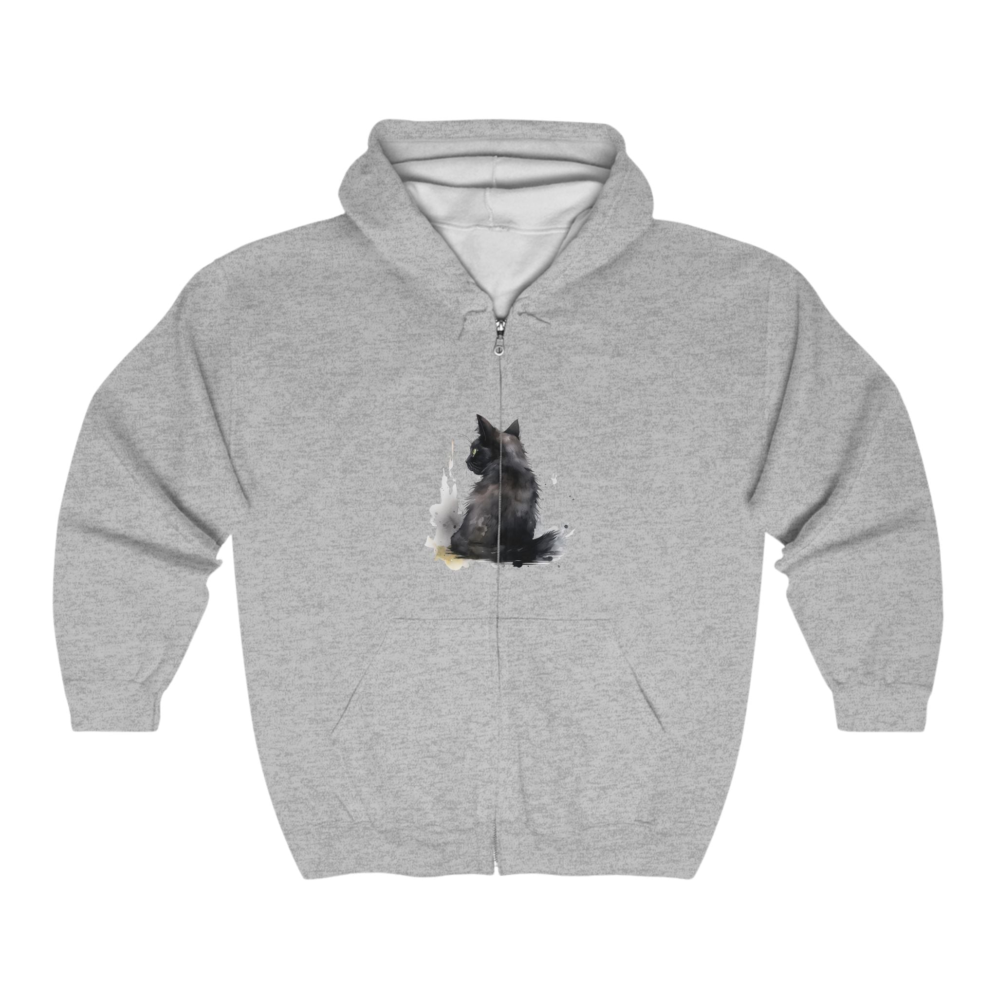 Felpa con cappuccio artistica con gatto nero: abbraccia l'eleganza accogliente