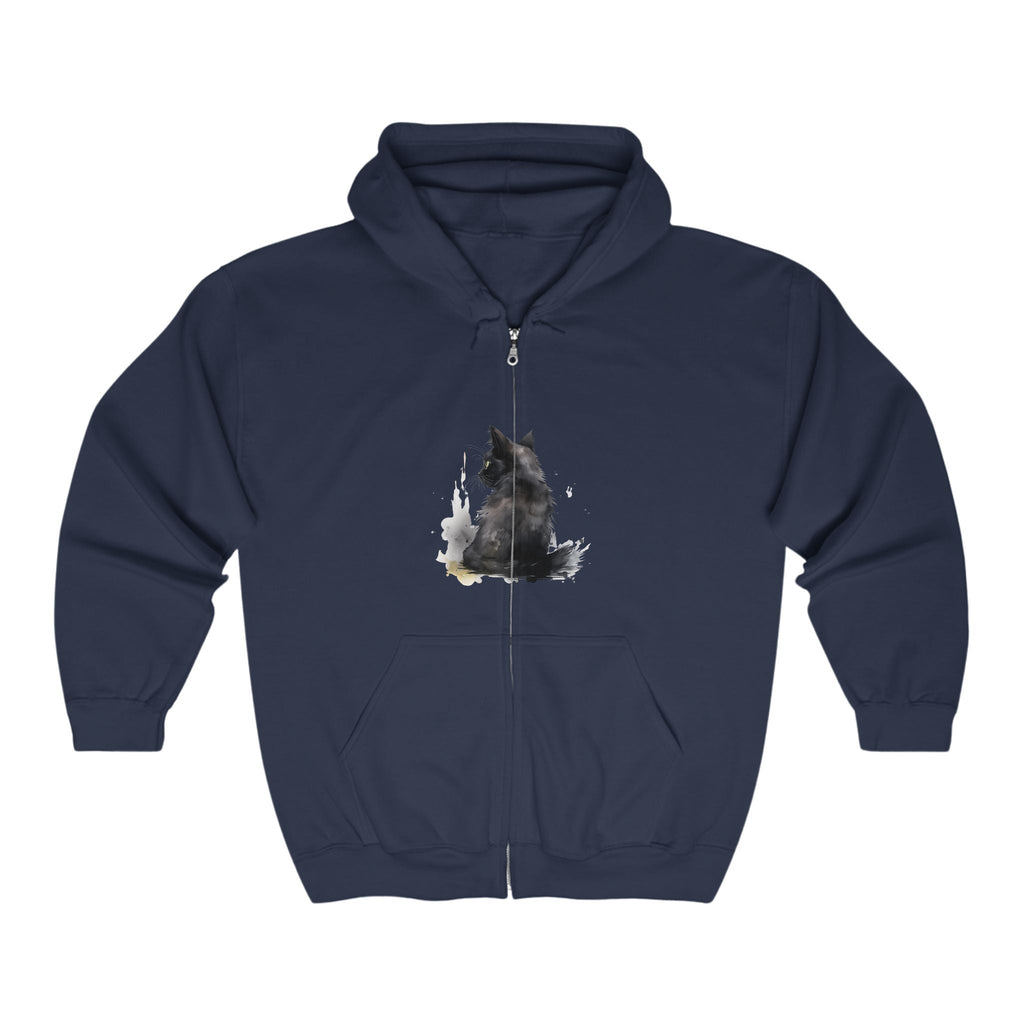 Felpa con cappuccio Mystical Black Cat Acquerello in tonalità blu intenso