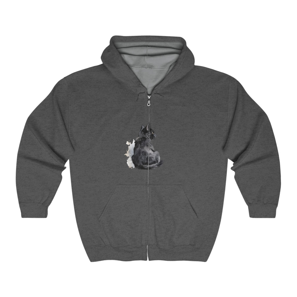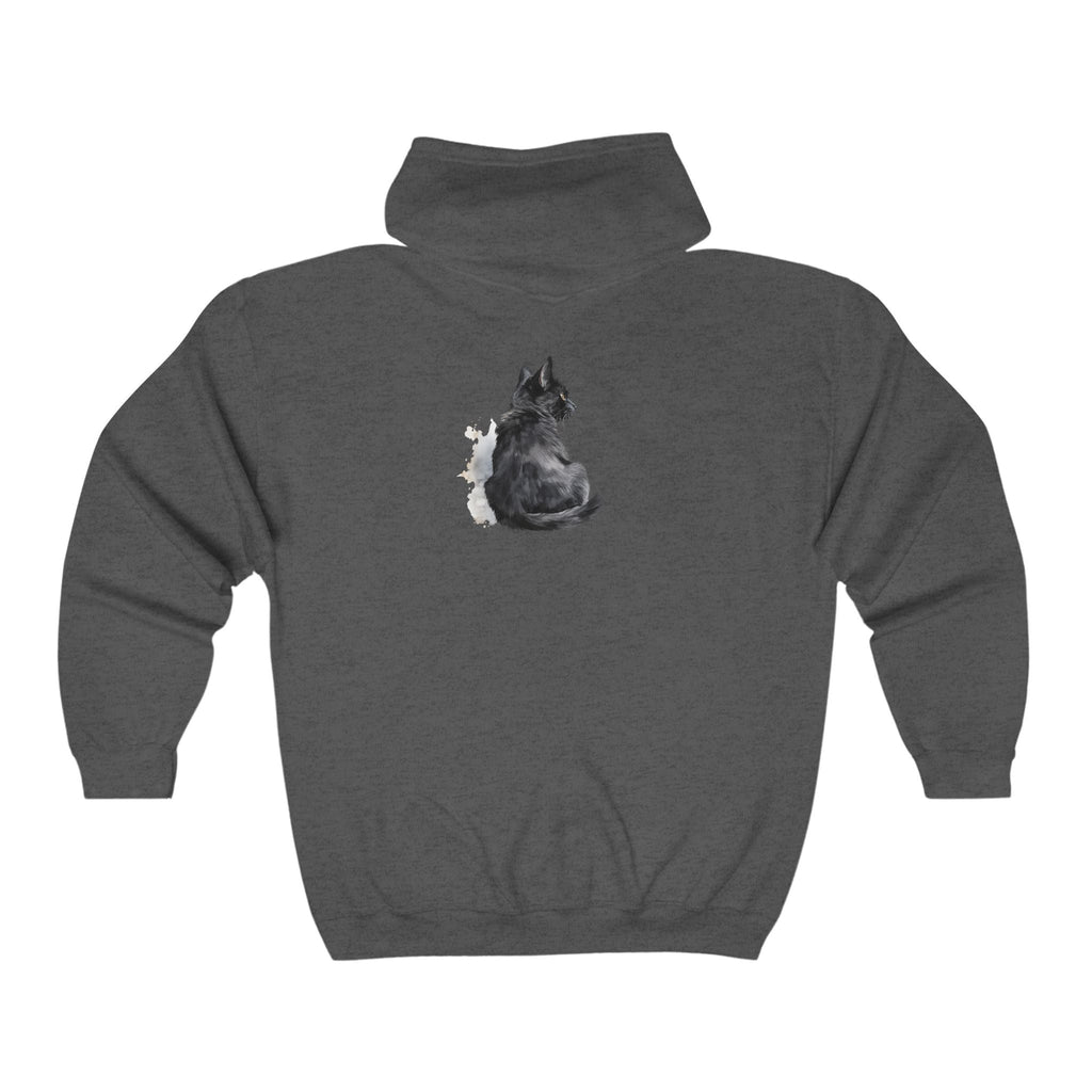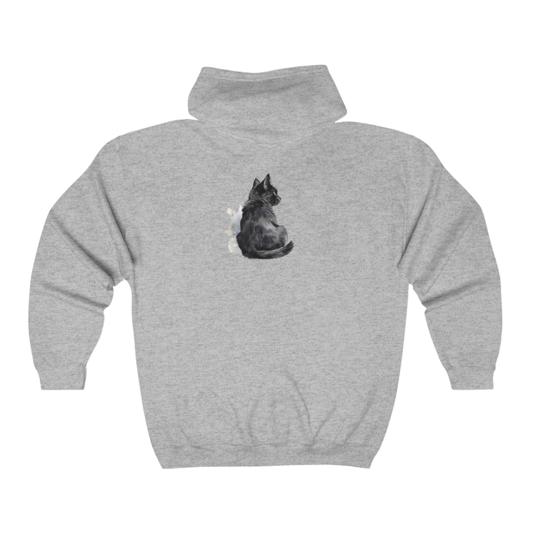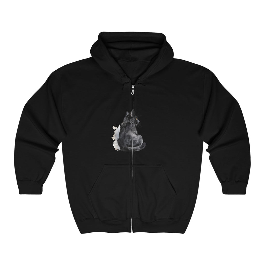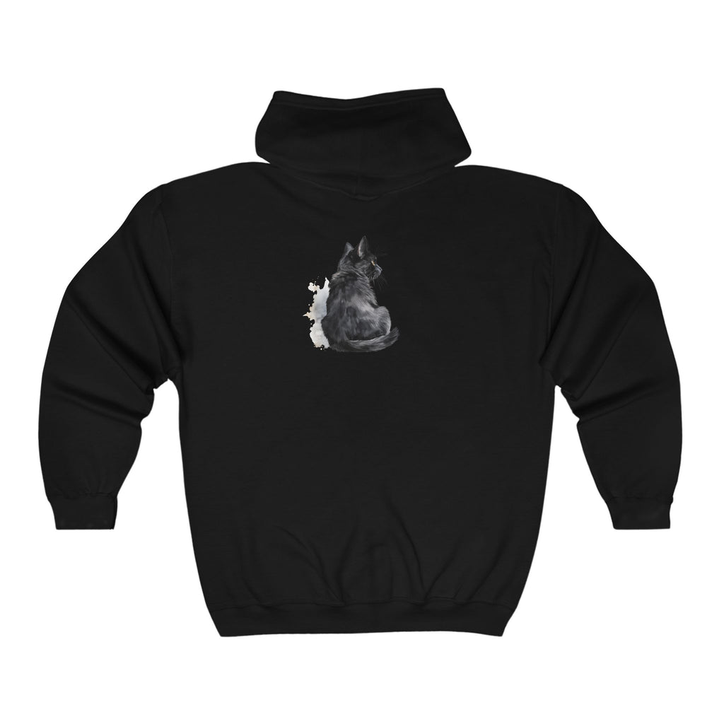 Felpa con cappuccio con silhouette di gatto nero in acquerello - Ciondolo enigmatico