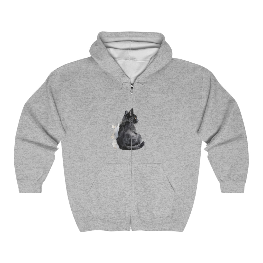 Svela la magia della notte con questa incantevole felpa con cappuccio, che mostra una suggestiva silhouette di gatto nero su uno sfondo acquerello da sogno. Le tonalità eteree si fondono perfettamente, evocando un senso di meraviglia e stravaganza che ti farà sentire come se fossi avvolto da un'opera d'arte. Perfetta per ogni amante dei gatti, questa felpa cattura l'essenza del fascino e del mistero felini.